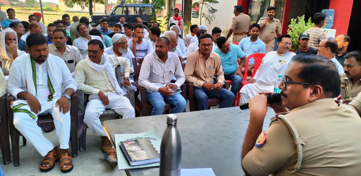 जौनपुर धारा, खेतासराय। थाना परिसर में बकरीद पर्व को देखते हुए मंगलवार को शांति समिति की बैठक आयोजित की गई। बैठक में क्षेत्र के जनप्रतिनिधि व गणमान्य लोग शामिल हुए। बैठक के दौरान प्रभारी निरीक्षक राजेश यादव ने जनप्रतिनिधि एवं गणमान्य लोगों से बकरीद पर्व को शांतिपूर्ण और भाईचारे के माहौल में परंपरागत तरीके से मनाने की अपील की। उन्होंने कहाकि बकरीद के दिन पूरे क्षेत्र में पुलिस गश्त जारी रहेगी। असामाजिक तत्वों पर विशेष नजर रखी जायेगी। ऐसे में कहीं भी कोई अफवाह फैले तो इसकी तुरंत सूचना प्रशासन को दें। शासन की गाइडलाइन का पूर्ण रूप से पालन हो। प्रतिबंधित पशुओं की कुर्बानी पूर्णत: निषेध है। कोई भी कुर्बानी का वीडियो ग्राफी नहीं करेगा। साफ सफाई को लेकर विशेष ध्यान दें। ऐसा कोई भी कार्य न हो जिससे सौहार्द खराब हो। चार जुलाई से शुरू हो रहे श्रावण मास पर भी चर्चा हुई। कांवड़ यात्रा करने वालों को हर सुवधिा व सुरक्षा मुहैया कराए जाने का भरोसा दिलाया। इस अवसर पर चेयरमैन वसीम अहमद, सैय्यद ताहिर, जगदम्बा पांडेय, शांतिभूषण मिश्रा, विक्की गुप्ता, असलम खान, मो. अरशद, मनीष गुप्ता, इलियास, अनिल कुमार प्रजापति, सेराज अहमद, अहमद नसीम, राकेश यादव लाला, सुफियान अहमद, मो. आसिम, शैलेश यादव, अमित सोनकर आदि मौजूद रहे।