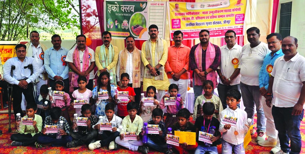 जौनपुर धारा,जौनपुर। प्राथमिक विद्यालय गुलरा केराकत के प्रांगण में वार्षिकोत्सव, शिक्षक सम्मान समारोह व माता उन्मुखीकरण कार्यक्रम आयोजित हुआ। कार्यक्रम को बतौर मुख्य अतिथि सम्बोधित करते हुए प्राथमिक शिक्षक संघ के अध्यक्ष अमित सिंह ने कहा कि यहाँ के बच्चों के शानदार मनमोहक प्रस्तुति ने सभी को मंत्रमुग्ध कर दिया। इससे स्पष्ट है कि परिषदीय विद्यालयों में आज बच्चों को सिर्फ किताबी शिक्षा नहीं दिया जा रहा है अपितु उनके सर्वांगीण विकास को सुनिश्चित किया जा रहा है। इससे पूर्व मुख्य अतिथि ने सरस्वती माँ के चित्र पर माल्यार्पण व दीप प्रज्वलित कर कार्यक्रम का शुभारंभ किया। सेवानिवृत्त शिक्षक फतेबहादुर सिंह को माल्यार्पण व स्मृतिचिन्ह देकर सम्मानित किया। प्रतिभा सम्मान के क्रम में विद्यालय के बच्चे आयुष राव को सत्र 2023-24 में जिले स्तर पर श्रुतलेख प्रतियोगिता में प्रथम स्थान प्राप्त करने के लिए एवं नवोदय विद्यालय में चयन हेतु सम्मानित किया गया। इस अवसर पर नवीन नामांकित बच्चों को माला पहनाकर व कॉपी पेंसिल रबर बॉटल इत्यादि देकर सम्मानित किया गया। कार्यक्रम की अध्यक्षता रमेश चंद्र सिंह पटेल एवं कार्यक्रम का संचालन उमेश सिंह ने किया। इस अवसर पर प्राथमिक शिक्षक संघ ब्लाक अध्यक्ष केराकत संजय सिंह, मंत्री सुशील सिंह, वरिष्ठ उपाध्यक्ष धीरज सिंह कश्यप, जिला प्रचार मंत्री संतोष राजभर, संगठन मंत्री प्रवीण सिंह, शैलेंद्र सिंह, अरविंद सिंह, शिशु यादव, सौरभ, मीना सिंह, उमेश, श्रीराम प्रजापति, शांतप्रिय गौतम, श्रीकेश मिश्रा, शैलजा पांडे सहित भारी संख्या में अभिभावक उपस्थित रहे।