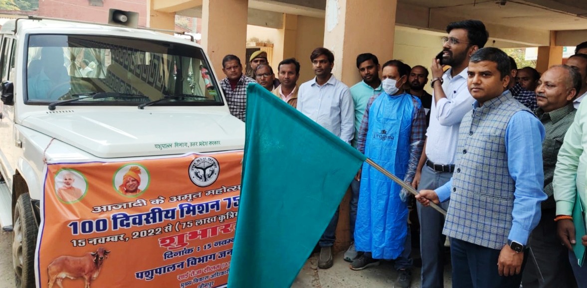 जौनपुर धारा, जौनपुर। अमृत महोत्सव में 100 दिवसीय मिशन 74 कृत्रिम गभार्धान अन्तर्गत 15 नवम्बर से 15 फरवरी 2023 तक पशुपालन विभाग द्वारा अभियान चलाया गया है जिसके अन्तर्गत जिलाधिकारी मनीष कुमार वर्मा द्वारा हरी झण्डी दिखाकर कार्यक्रम का शुभारंभ किया। जिलाधिकारी ने बताया कि जनपद में कृत्रिम गभार्धान से सम्बन्धित कुल लक्ष्य 76195 शासन द्वारा आवंटित किय गया है। प्रत्येक पशुचिकित्सालय, पशु सेवा केन्द्र एवं क्रियाशील पैरावेट/मैत्री को लक्ष्य का आवंटन कर दिया गया है। योजनान्तर्गत प्रति पशुचिकित्साधिकारी एवं पशुधन प्रसार अधिकारी को कम से कम 5 कृत्रिम गभार्धान एवं पैरावेट/पशु मित्र/कृ०ग० कार्यकर्ताओं को प्रतिदिन कम से कम 10 कृत्रिम गभार्धान कार्य नि:शुल्क किये जाने हेतु निर्देशित किया गया है। इस तरह 100 दिवस में लक्ष्य को शत प्रतिशत पूर्ण कर लिया जायेगा। योजना के संचालन हेतु बैनर, पोस्टर, पम्पलेट के माध्यम से वृहद प्रचार-प्रसार किया जा रहा है। योजना के संचालन हेतु जनपदीय नोडल अधिकारी डा. संदीप कुमार अग्रवाल संयुक्त निदेशक/उपमुख्य पशुचिकित्साधिकारी सदर, मो.नं. 9415619152 तथा सह-नोडल अधिकारी डा. पवन कुमार पशु चिकित्साधिकारी बख्शा मो.नं. 9451228057 से सम्पर्क किया जा सकता है।