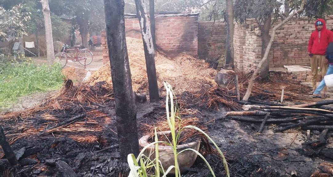 पशुशाला में लगी आग, एक गाय की मौत, दो झुलसीं