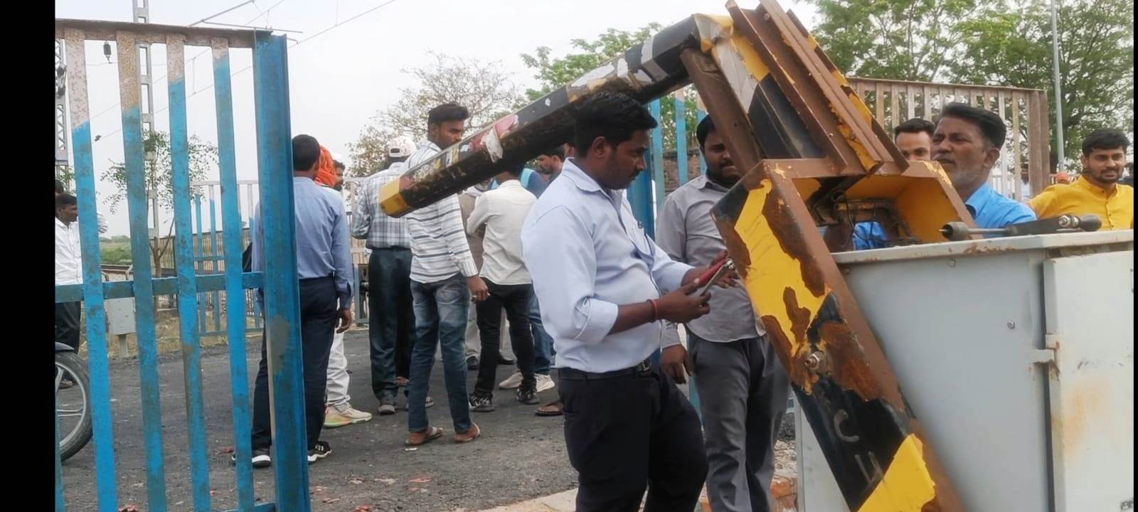 पिकअप के धक्के से टूटा रेलवे फाटक