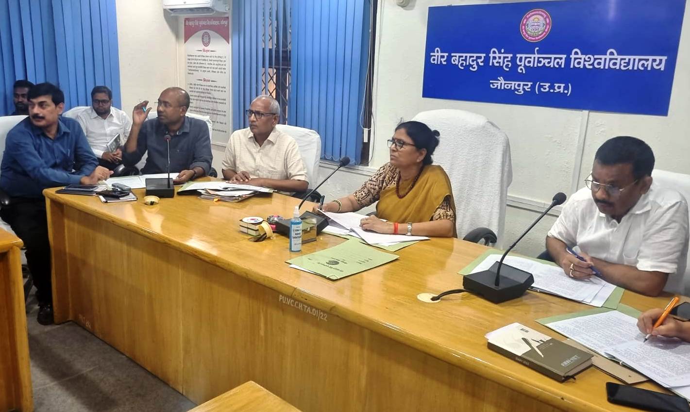 जौनपुर धारा, जौनपुर। वीर बहादुर सिंह पूर्वांचल विश्वविद्यालय का 27वां दीक्षांत समारोह नौ नवम्बर 2023 को आयोजित है।इस सम्बन्ध में विश्वविद्यालय की कुलपति प्रो.वंदना सिंह की अध्यक्षता में दीक्षांत समारोह कमेटी की तैयारी बैठक गुरुवार को कुलपति सभागार में हुई। कुलपति और कुलसचिव महेंद्र कुमार ने कुल 50समितियों के संयोजकों से तैयारी के सम्बन्ध में वार्ता की। कुलपति वंदना सिंह ने कहा कि दीक्षांत समारोह में किसी भी प्रकार की कोई दिक्कत नहीं होनी चाहिए। सभी संयोजक अपनी टीम के साथ सक्रिय रूप से काम में लग जाए। सम्बंधित फाइल को आफिस के माध्यम से चला दें। क्योंकि कुछ फाइलों की कारर्वाई को नियमानुसार कराने में समय लगता है। उन्होंने कहा कि आज ही 27वें दीक्षांत समारोह की सूचना की तिथि राजभवन से निर्धारित की गई है। साथ ही राजभवन के निर्देश पर कई प्रतियोगिता, वाद-विवाद समेत कई कार्यक्रम का भी आयोजन किया जाना है। दीक्षांत समारोह को ध्यान में रखते हुए विश्वविद्यालय की साफ-सफाई पर भी चर्चा की गई। इस अवसर पर परीक्षा नियंत्रक वीएन सिंह, उप कुलसचिव अमृतलाल, प्रो.बीबी तिवारी, प्रो.वंदना राय, प्रो.अजय प्रताप सिंह, प्रो.अविनाश पाथर्डीकर, प्रो.रजनीश भास्कर, प्रो.देवराज सिंह, प्रो.संदीप सिंह, प्रो.मुराद अली, प्रो.सौरभ पाल, डॉ.मनोज मिश्र, डॉ.संतोष कुमार, एनएसएस समन्वयक डा.राजबहादुर यादव, डॉ.प्रमोद कुमार, डॉ.रसिकेश, डॉ.आशुतोष सिंह, डॉ.सुनील कुमार, डॉ.अनु त्यागी, सहायक कुलसचिव अजीत सिंह, बबीता सिंह, एमएम भट्ट, डॉ.लक्ष्मी प्रसाद मौर्य, संतोष कुमार मौर्य, कपिल कुमार त्यागी आदि लोग उपस्थित थे।