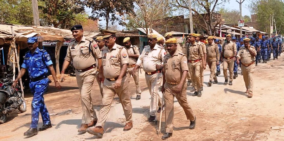 पुलिस व आरएफ के जवानों ने किया फ्लैग मार्च