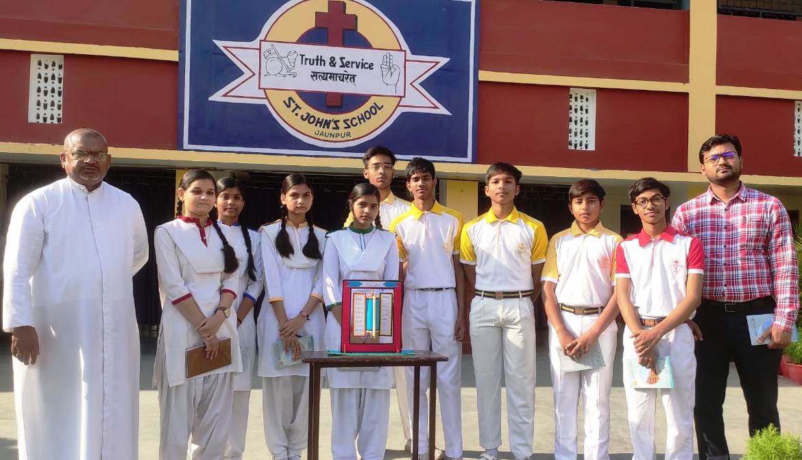 जौनपुर धारा,जौनपुर। सेंटजॉन्स स्कूल सिद्दीकपुर की शनिवासरीय प्रार्थना सभा में कक्षा 10 अ के छात्रों ने अंग्रेजी व्याकरण आधारित वाक्य संरचना पर परियोजना प्रस्तुत किया। इस सप्ताह प्रार्थना सभा में छात्रों ने अंग्रेजी के प्रमुख कवियों के जीवनवृत्त एवं कृतित्व पर प्रकाश डाला। विद्यालय के प्रधानाचार्य फादर पी.विक्टर ने विद्यार्थियों को सम्बोधित करते हुए कहा कि शिक्षा केवल पुस्तकीय ज्ञान तक ही सीमित नहीं होनी चाहिए। पुस्तक से सीखे गए ज्ञान को जीवन में उतारना चाहिए। जीवन में उतारे बिना शिक्षा अधूरी रहेगी। फादर ने अध्यापक-अध्यापिकाओं को संबोधित करते हुए कहा कि बच्चों को शिक्षा देते समय इस बात का ध्यान रखना चाहिए कि वे व्यवहारिक ज्ञान एवं आध्यात्मिक ज्ञान में सामंजस्य बैठा सकें। आध्यामिक ज्ञान, नैतिक मूल्यों के बिना शिक्षा, शिक्षा के वास्तविक स्वरूप को प्रकाशित करने में समर्थन नहीं होगी।