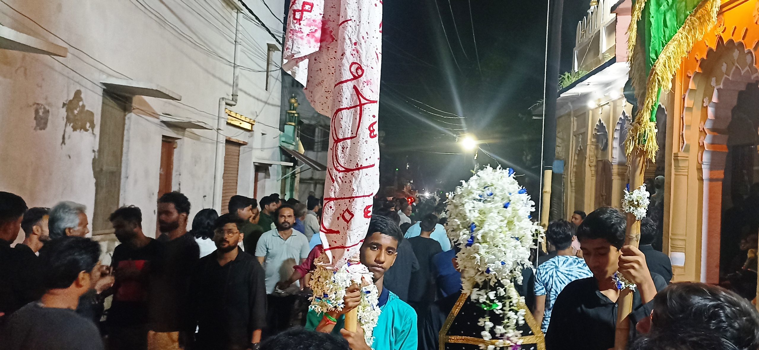 जौनपुर धारा, जौनपुर। अल्लाह के आखिरी पैगम्बर रसूले ख़ुदा हज़रत मोहम्मद मुस्तफा साहब व दूसरे इमाम हज़रत इमाम हसन अलैहिस्सलाम की शहादत की याद में देर रात्रि में जुलूस नकी फाटक में मजलिस के साथ सम्पन्न हुआ हुआ। मो.अब्बास काज़मी ने अपने साथियों के साथ सोज़ख्वानी तथा पेशख्वानी हेजाब इमामपुरी व साहेबरज़ा ने किया। मजलिस को धर्मगुरु मौलाना महफूज़ुल हसन खां ने सम्बोधित करते हुए पैगम्बरे इस्लाम मोहम्मद साहब के जीवन पर प्रकाश डालते हुए कहा कि मोहम्मद साहब ने पूरी दुनिया को न सिर्फ शांति का संदेश दिया बल्कि अपने किरदार से दुनिया को अंधकार मुक्त बनाने का तरीका भी बताया। आगे उन्होंने कहा कि हजरत मोहम्मद साहब का दुनिया में आने का मकसद लोगों में भाईचारा व मोहब्बत का पैगाम देना था। मोहम्मद साहब ने पैगाम दिया है कि मोहब्बत से जीना ही जिंदगी है। दूसरों के बुरे समय में मददगार बनने वाला अल्लाह का नेक बंदा होता है। बाद खत्म मजलिस शबीहे अलम निकाला गया। उसके बाद नकी फाटक के सामने हुसैनिया मस्जिद पर मौलाना सैय्यद दाबिश हसन नक़वी ने तकरीर करते हुए हज़रत इमाम हसन की शहादत का वाक़या पढ़ा और बताया कि इमाम को ज़हर देकर शहीद किया गया तो माहौल ग़मगीन होगा। लोग सिसकियों के साथ रोने लगे। तभी शबीहे ताबूत निकाला गया, और एक जुलूस की शक्ल में अन्जुमने नौहा पढ़ती मातम करती हुई मल्हनी पड़ाव होतें हुए इमाम चौक वक़्फ़ बीकानी बीबी तक गई। जुलूस पुनः नक़ी फाटक में आकर समपन्न हुआ। इस अवसर पर सै.मो हसन नसीम, इसरार हुसैन एडवोकेट, असद, कायम आब्दी, शोएब, मुफ्ती शारिब, सै.मेहदी हसन सामिन, ताहिर खान, जहीर हसन, नजमुल हसन, हुसैन मुस्तफा वजी, अमीरुल हसन, साजन, सहित हज़ारों की संख्या में महिला पुरुष बच्चे उपस्थित रहे।