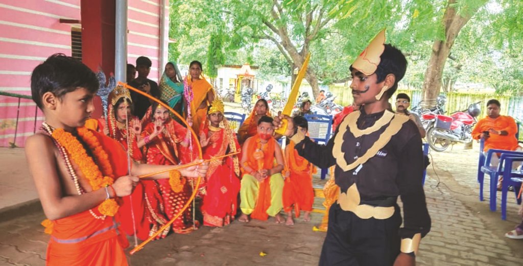 सिकरारा। मां दुर्गा की आराधना महापर्व शारदीय नवरात्रि पर शनिवार को प्राथमिक विद्यालय ताहिरपुर की छात्राओं द्वारा जगत जननी मां दुर्गा के नौ रूपो का रूप धारण कर महिषासुर का मर्दन किया तो छात्रों ने रावण वध का शानदार मंचन प्रस्तुत कर समाज में नारी शक्ति की महत्ता को उजागर कर मिशन शक्ति के तहत बेटियों को शसक्त बनाने के लिए प्रेरित किया गया। विद्यालय की छात्राओं ने मां दुर्गा के स्वरूप माता शैलपुत्री, माता ब्रह्मचारिणी, मां चंद्रघंटा, मां कुमांडा, मां स्कन्द माता, मां कात्यायनी, मां काली, मां गौरी व सिद्धिदात्री के स्वरूप को प्रस्तुत कर महिषासुर मर्दन का दृश्य प्रस्तुत कर सभी को रोमांचित कर दिया। विद्यालय के प्रधानाध्यापक अमित सिंह के निर्देशन में शिक्षिका नेहा जायसवाल, आराधना उपाध्याय, मंजू जायसवार, गजाला बानो, श्यामधर यादव, मनोज जायसवाल व माधुरी सिंह ने छात्राओं को मां के स्वरूपों के महात्म्य व उनके शस्त्रों से सुसज्जित कराने में सहयोग प्रदान किया। छात्रों ने रावण बध का मंचन कर सभी को भाव विभोर कर दिया। विद्यालय के प्रधानाध्यक व प्राथमिक शिक्षक संघ के जिलाध्यक्ष अमित सिंह ने आभार व्यक्त करते हुए कहा कि शारदीय नवरात्रि का पावन पर्व मां दुर्गा के नौ स्वरूपों की उपासना के लिए समर्पित होता है। कहा कि मिशन शक्ति का पांचवां चरण की शुरुआत हो गई है जो पूर्ण रूप से महिलाओं की सुरक्षा, सम्मान एवं स्वावलंबन को समर्पित है। इस अभियान से महिलाओं और बालिकाओं की सुरक्षा एवं सशक्तीकरण की दिशा में बेहतर परिणाम मिलेगा। बच्चों के मंचन कार्य का उपस्थित अभिभावकों ने भी जमकर सराहना किया।