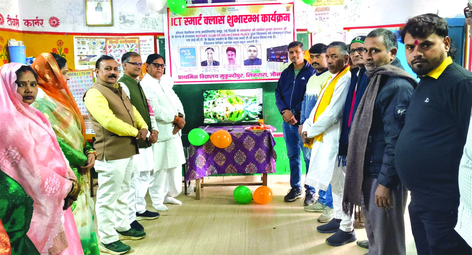 जौनपुर। सरकारी प्राथमिक विद्यालय मुकुन्दीपुर में शिक्षा को आधुनिक और प्रभावी बनाने की दिशा में एक सराहनीय पहल की गई। सोशल वेलफेयर एंड अपलिफ्टमेंट सोसाइटी, नई दिल्ली के संस्थापक अवधेश अग्रवाल की प्रेरणा से रोटरी क्लब ऑफ दिल्ली कामा पैलेस द्वारा विद्यालय को 32 इंच का स्मार्ट टीवी तथा बच्चों के लिए 50 जोड़ी जूता-मोजा प्रदान किया गया। कार्यक्रम का शुभारंभ 77वें गणतंत्र दिवस के अवसर पर पूर्व ब्लॉक प्रमुख एवं वर्तमान उपाध्यक्ष सुधाकर उपाध्याय भाजपा द्वारा ध्वजारोहण के पश्चात मां सरस्वती की प्रतिमा के समक्ष दीप प्रज्वलन कर किया गया। इस अवसर पर गणतंत्र दिवस के उपलक्ष्य में विशेष सांस्कृतिक कार्यक्रम का आयोजन किया गया, जिसके उपरांत प्रतिभागी बच्चों को पुरस्कृत किया गया। कार्यक्रम में ग्राम सभा के कई गणमान्य लोग उपस्थित रहे। आईसीटी कक्ष के उद्घाटन अवसर पर सुधाकर उपाध्याय, प्रेम तिवारी एवं शिवम सिंह ने सामाजिक क्षेत्र में किए जा रहे। इस सराहनीय कार्य के लिए अवधेश अग्रवाल के प्रति आभार व्यक्त करते हुए उनकी प्रशंसा की। विद्यालय परिवार ने बताया कि स्मार्ट टीवी के माध्यम से बच्चों को डिजिटल कंटेंट, शैक्षिक वीडियो और स्मार्ट क्लास की सुविधा मिलेगी, जिससे उनकी समझ विकसित होगी और सीखने में रुचि बढ़ेगी। यह पहल ग्रामीण एवं सरकारी विद्यालयों में गुणवत्तापूर्ण शिक्षा को बढ़ावा देने में सहायक सिद्ध होगी। विद्यालय के प्रभारी प्रधानाध्यापक आशीष कुमार मौर्य तथा शिक्षक अमित कुमार सिंह, दीपक कुमार, राजेश मिश्र एवं रंजीता मिश्रा ने अवधेश अग्रवाल एवं सोशल वेलफेयर एंड अपलिफ्टमेंट सोसाइटी का हृदय से आभार व्यक्त करते हुए कहा कि ऐसे प्रयास समाज और शिक्षा के क्षेत्र में सकारात्मक परिवर्तन लाने में महत्वपूर्ण भूमिका निभाते हैं।