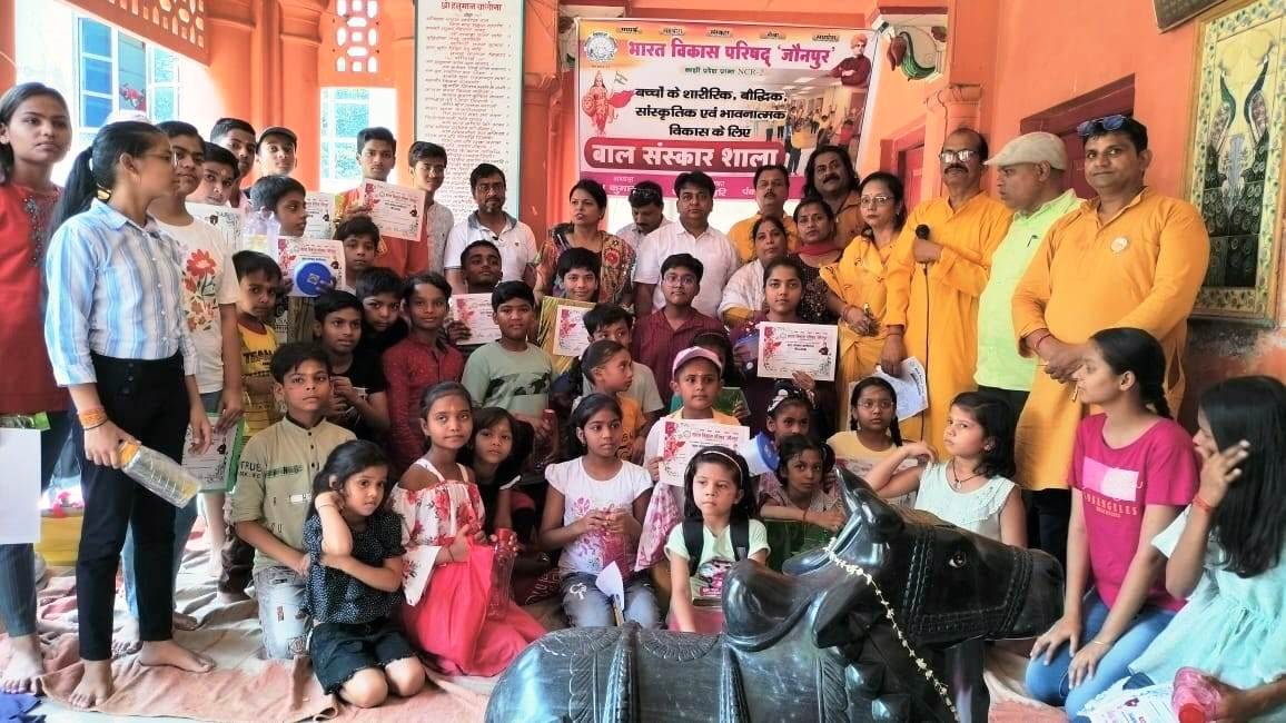 जौनपुर धारा, जौनपुर। भारत विकास परिषद जौनपुर शाखा की महिला संयोजिका श्वेता अग्रहरि के नेतृत्व में बाल संस्कार कार्यशाला महावीर मंदिर में सम्पन्न हुआ। मुख्य अतिथि डा. नीरज गुप्ता एव रेनू गुप्ता ने परिषद के आराध्य पर पुष्प अर्पित कर वन्देमातरम गीत से शुभारम्भ किया। अध्यक्ष शिव कुमार गुप्ता ने इस कार्यक्रम की महत्ता बताते हुए कहाकि आज के इस पाश्चात्य समाज में अपनी संस्कृति की रक्षा के लिए बच्चो में शुरू से ही अच्छे संस्कार के द्वारा कुरूतियों से बचा जा सकता है। इस संस्कार शाला में 5 वर्ष से 15 वर्ष तक बालक बालिकाओं द्वारा चित्रकारी, सुलेख, गायन, नृत्य, योगासन के कार्यक्रम द्वारा अपने अंदर छिपी हुई प्रतिभा को निखारने का प्रयास किया। प्रकल्प संयोजक डा. रेनू गुप्ता ने सनातन धर्म के विषय मे जानकारी दी। उत्कृष्ट प्रदर्शन करने वाले प्रतिभागियों को भारत विकास परिषद के संस्थापक अध्यक्ष लोकेश गुप्त, पूर्व अध्यक्ष भृगुनाथ पाठक, अवधेश गिरी, विक्रम गुप्त द्वारा प्रशस्ति पत्र दिया गया। संस्कार शाला में 5 साल की बच्ची श्रेयांशी मौर्या को हनुमान चालीसा कंठस्थ होने पर प्रथम पुरस्कार दिलीप जायसवाल ने दिया। द्वितीय पुरस्कार सार्थक अग्रहरि, तृतीय पुरस्कार अदिति अग्रहरि को पूर्व महिला संयोजिका ममता साहू व निशा गिरी ने दिया। कार्यक्रम में आये उपस्थित अभिभावक गौरव मौर्य, गणेश साहू, अजय गुप्ता, अरूण कुमार, भरत, राकेश, अभिषेक का आभार कोषाध्यक्ष शरद साहू ने किया। संचालन सतेंद्र अग्रहरि ने आभार शिव कुमार ने किया।