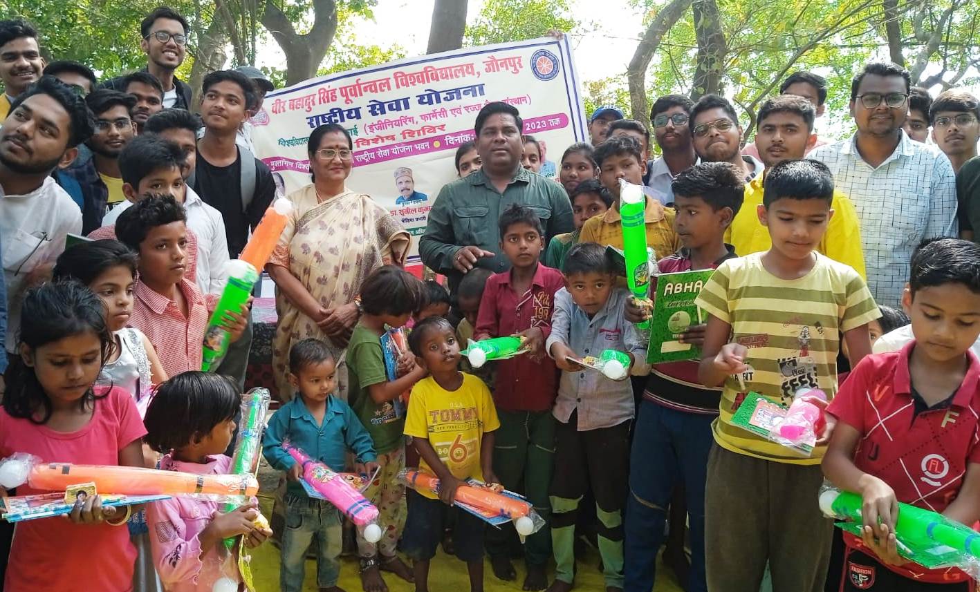 चारों गांव के आंगनबाड़ी केंद्रों के 40 बच्चों को कॉपी, किताब, पेंसिल खेलकूद सामग्री आदि कुलपति द्वारा प्रदान की गई। साथ ही कुलपति द्वारा स्वयंसेवक एवं सेविकाओं को संबोधित करते हुए कहा गया कि सामाजिकता और समरसता के तालमेल से ही व्यक्तित्व का पूर्ण रूप से विकास होता है। आज इसकी झलक स्वयंसेवक एवं सेविकाओं द्वारा देखने को मुझे देवकली ग्रामीण क्षेत्र के पोखरे पर मिलीं। स्वयंसेवक एवं सेविकाओं द्वारा शिविर में बनाए गए भेजन का भी आनंद लिया। शिविर की रूपरेखा डॉ. अजय मौर्या द्वारा प्रस्तुत किया गया और कार्यक्रम एवं रैली का संचालन वरिष्ठ कार्यक्रम अधिकारी डॉ. विनय वर्मा द्वारा किया गया। धन्यवाद ज्ञापन कार्यक्रम अधिकारी डॉ. विशाल यादव द्वारा ज्ञापित किया गया। रैली का संचालन राष्ट्रीय सेवा योजना विश्वविद्यालय परिसर के प्रभारी कयामुद्दीन द्वारा हरी झंडी दिखाकर किया गया। इस अवसर पर डा. लक्ष्मी प्रसाद मौर्य, मैलाश, मन्ना यादव, मनोज, ओम प्रकाश यादव, सर्वेश यादव कार्यक्रम अधिकारी डॉ. शशिकांत यादव, स्वयंसेवक विवेक पांडे आलोक मौर्य, अरमान शेख, अल्तमश खान, सोशलिस्ट हस्सान आजमी, राज सिंह, आलोक यादव, सुभम साहू, उत्कर्ष त्रिपाठी, आकाश उपाध्याय, प्रशांत यादव आदि उपस्थित रहे।