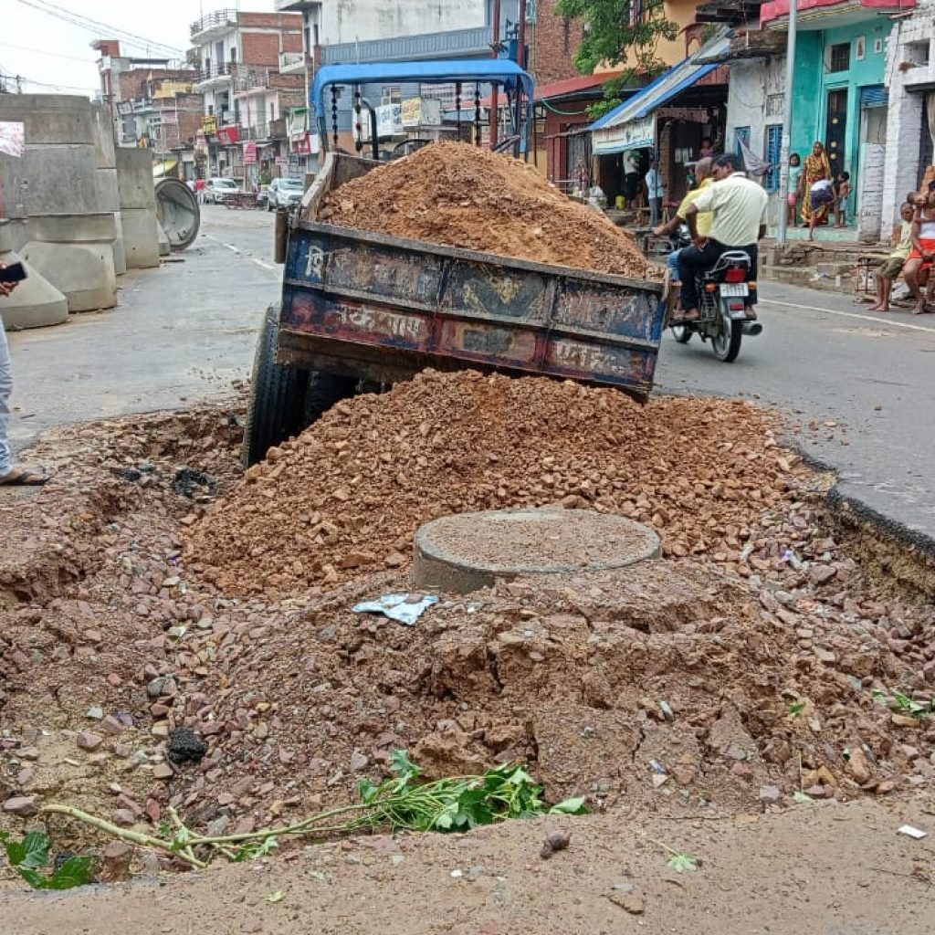 अधिकारियों के आवागमन वाले मार्गों पर धसे सड़क को गिट्टी डालकर सही किया जा रहा है। तो वहीं लाइन बाजार में धसे सड़क पर गिट्टी डालने आया ट्रेक्टर भी धस गया। नगर में आये दिन धस रही सड़को से लोग दहशत में है। तो वहीं सीवर डाले जाने के लिये खोदे सड़कों के न बनने से लोगों के साथ छोटी-छोटी घटनाएं भी हो रही है।