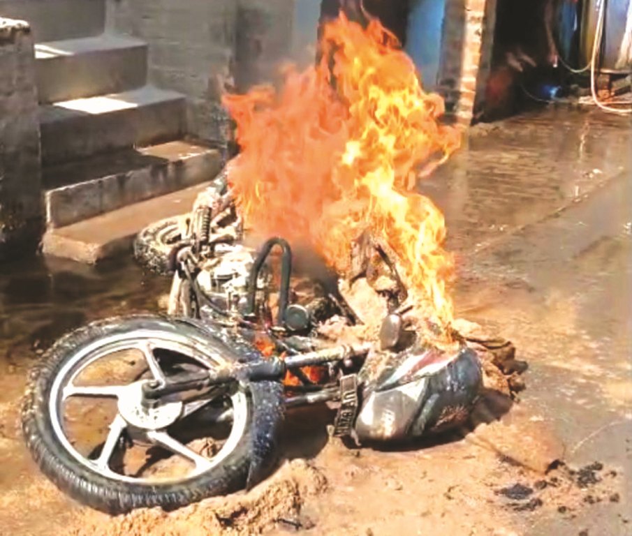 बाइक में अचानक लगी आग, इलाके में मची अफरा-तफरी