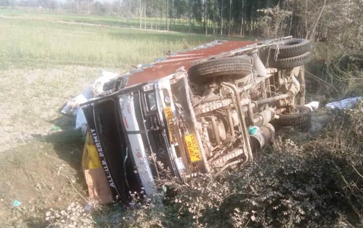 जौनपुर धारा, जौनपुर। सुइथाकला थाना क्षेत्र के लखनऊ-बलिया राजमार्ग पर सदरुद्दीनपुर गांव के पास एक कबाड़ लदी ट्रक सोमवार देर शाम बाइक सवार को बचाने के चक्कर में गड्ढे में पलट गयी हालांकि चालक बाल बाल बच गया लेकिन ट्रक क्षतिग्रस्त हो गई। लोग बाइक सवार को कोसते नजर आये। बता दें कि ट्रक संख्या यूपी50एटी2393 सोमवार की शाम शाहगंज से कबाड़ लादकर कानपुर के लिए निकली। ट्रक जैसे ही लखनऊ बलिया राजमार्ग पर थाना क्षेत्र के सदरुद्दीनपुर गांव के पास पहुँची कि एक बाइक सवार को बचाने के चक्कर में गड्ढे में पलट गयी जिसमें चालक अशोक पुत्र मुन्नालाल निवासी अम्बेडकरनगर भादी शाहगंज को खरोंच तक नहीं आई लेकिन ट्रक क्षतिग्रस्त हो गई।