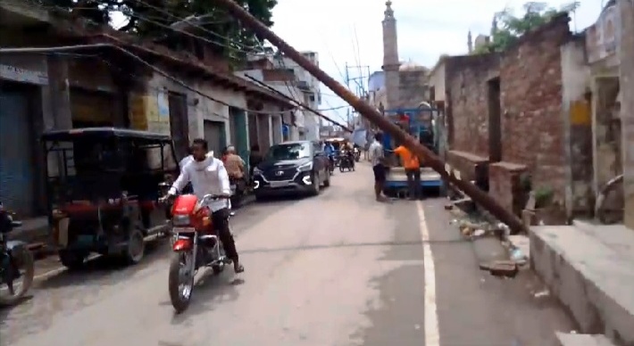 बुधवार की सुबह हल्की बरसात के बाद 2 विद्युत पोल टूटकर सड़क से सटे दुकानों पर गिर गए। इसके कारण कई इलाकों में विद्युत व्यवस्था बाधित हो गई। इसे फिर से सुचारू करने के लिए कर्मचारियों को काफी मशक्कत करनी पड़ी। जो पोल टूटकर गिरे वह लोहे के थे। वैसे बिजली विभाग के पोल कितने मजबूत हैं इसका जीता-जागता सबूत बुधवार को देखने को मिला कि बारिश का हल्के झोंके से विद्युत पोल धराशायी हो कर सड़क के दूसरी ओर दुकानों पर जा गिरा। गनीमत यह थी कि कोई बड़ा हादसा नहीं हुआ। बुधवार की सुबह करीब 9 बजे बदली और बारिश का हल्का फ़ुहार पड़ने लगा। लोग इस फ़ुहार से बचने के लिये राजा श्रीकृष्ण दत्त इण्टर कॉलेज के आस-पास स्थानीय दुकान और मकान की शरण में थे कि अचानक विद्युत विभाग का 2 खम्भा तेज आवाज के साथ भरभरा कर गिरने लगा। जिसके कारण आस-पास के लोग व राहगीर घबरा कर इधर-उधर भागने लगे। उक्त खम्भों से 440 वोल्ट की करेंट प्रवाहित थी और वह दूसरे मकान पर जा कर टिक गया। आनन-फानन में स्थानीय लोगों ने इसकी सूचना राज कॉलेज पुलिस चौकी पर दिया। चौकी प्रभारी ने इसकी सूचना बिजली विभाग को देकर बिजली को कटवाया। स्थानीय लोगों ने बताया कि 3 साल पहले ही यह खम्भा लगाया गया था और इतनी जल्दी यह सड़ गया। जब की बिजली विभाग के पुराने खम्भे सालों बाद खोद कर निकाला गया था, लेकिन अभी तक उसमें जंग भी नहीं लगा था।