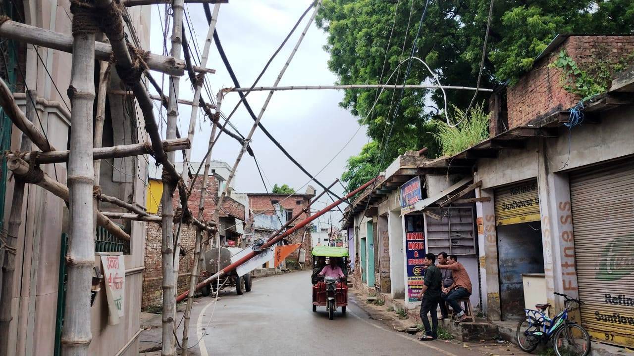 • बीच सड़क पर दुकानों के बारजे पर जा गिरा दो खम्भा
