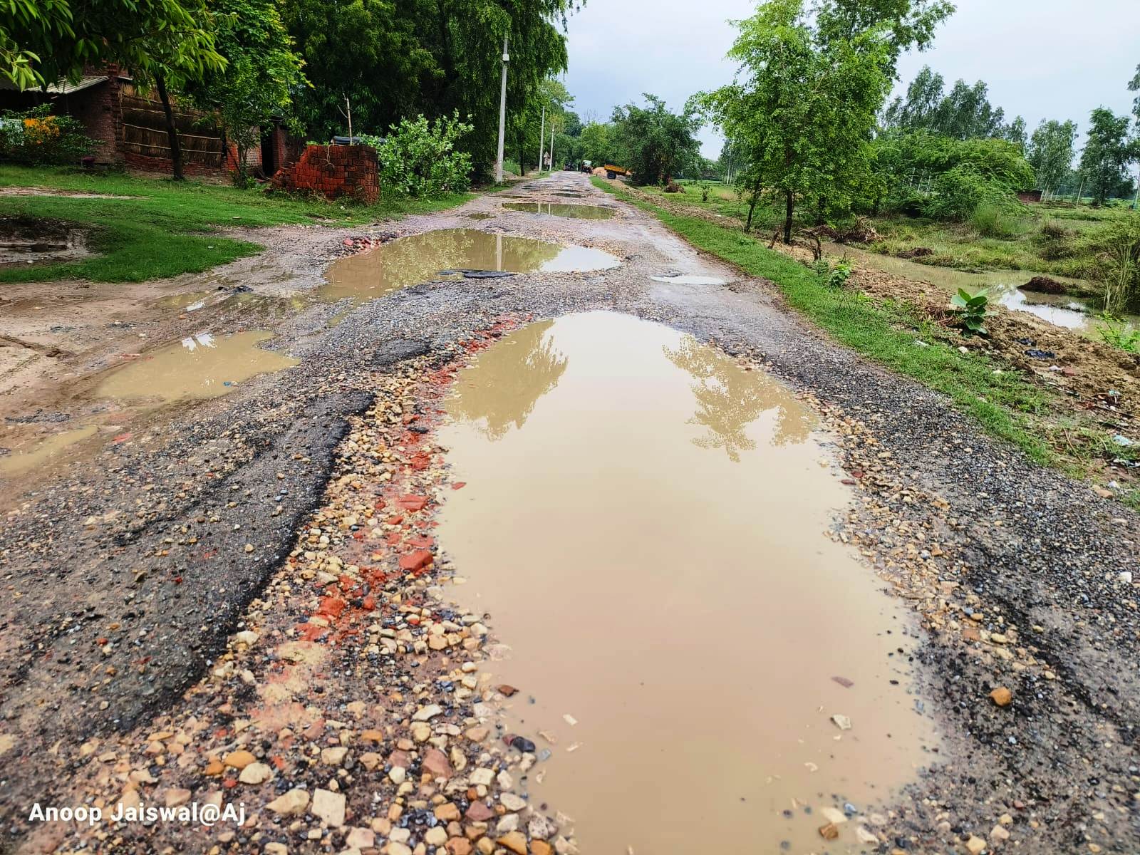 बारिश के पानी में डूबी जर्जर सड़क, आवागमन दुश्वार