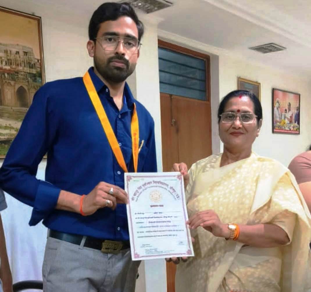 जौनपुर धारा, जौनपुर। तिलकधारी स्नातकोत्तर महाविद्यालय के सॉयल साइंस और एग्रीकल्चर केमेस्ट्री डिपार्टमेंट में अध्ययनरत परास्नातक द्वितीय वर्ष के छात्र नवीन शेखर को पूरे पूर्वांचल विश्वविद्यालय में टाप करने पर कुलपति प्रोफेसर निर्मला एस. मौर्य ने गोल्ड मेडल तथा सम्मान पत्र प्रदान कर सम्मानित किया तथा उनके उज्वल भविष्य के लिए उन्हें आशीर्वाद दिया।