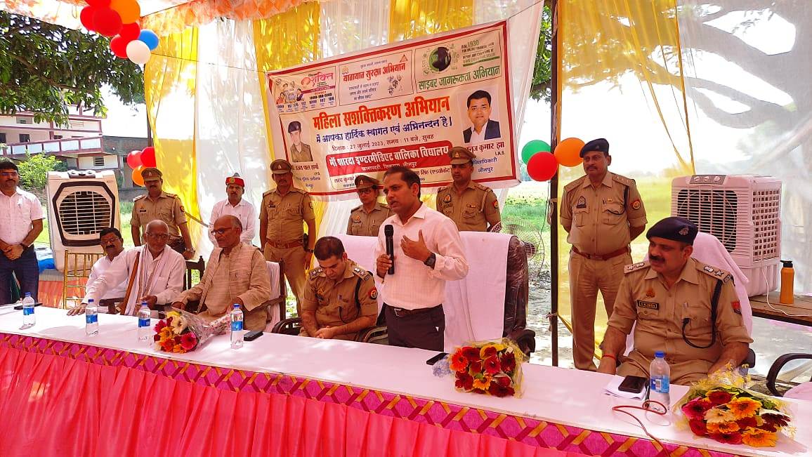 कार्यक्रम के मुख्य अतिथि जिलाधिकारी अनुज कुमार झा ने कहा कि बेटियां शिक्षित होंगी तभी सशक्त बनेगी। सफलता के लिए उन्हें कठिन परिश्रम करना होगा। महिलाओ को विषम परिस्थितियों से निपटने के लिए इस तरह के जागरूकता अभियान कारगर साबित हो रहे है। उन्होंने पढ़ाई करने वाली बेटियों मोबाइल से दूर रहने की नसीहत दी जिससे उनके लक्ष्य की प्राप्ति मे भटकाव न हो। विशिष्ट अतिथि पुलिस अधीक्षक डा. अजय पाल शर्मा ने कहा कि जागरूकता से ही साइबर अपराध कम होगा। अपने आस पास पूरी तरह से सतर्क रहे। किसी भी अपराध का शिकार न हो इसके लिए हम हर तरह से समय- समय पर शासन के निर्देश पर आप सब को जागरूक करने का प्रयास करते है। यह प्रयास तभी सफल होगा जब आप की सहभागिता इसमें रहेगी। उन्होंने कहा कि यातायात नियमों का पूर्णत: पालन करे। किसी बीमारी से उतनी मौत नहीं होती जितनी सड़क हादसे मे होती है। अतिथियों द्वारा पुलिस व प्रशासन द्वारा की त्वरित कार्रवाई से लाभान्वित दस पीड़ित महिलाओं को पौधा, छाता व टार्च प्रदान किया गया। विद्यालय की मेधावी छात्रा विशाखा सिंह व महिमा कन्नोजिया के साथ दस मेधावी छात्राओं को अतिथियों द्वारा प्रमाण पत्र देकर सम्मानित किया गया। थानाध्यक्ष महेश कुमार सिंह को भी अतिथियों द्वारा सम्मानित किया गया। अपर पुलिस अधीक्षक शैलेन्द्र कुमार सिंह, सीओ सदर संत प्रसाद उपाध्याय, महिला थानाध्यक्ष सरोज सिंह, साइबर क्राइम पर ओपी जायसवाल व यातायात पर उप निरीक्षक सुनील मिश्रा ने विस्तार से जानकारी दी। छात्राओ द्वारा गीत व एकाकी प्रस्तुत किया गया। विद्यालय के प्रबंधक जगदीश नारायण सिंह, संस्थापक विजय बहादुर सिंह व अध्यक्ष डा. जोखन सिंह ने अतिथियों को स्मृति चिन्ह प्रदान किया। इस अवसर पर समाजसेवी विनय सिंह, अरबिन्द सिंह, मो. असलम, रामचंद्र सिंह, सुशील सिंह, श्रवण यादव, दिलीप सिंह, कविता सिंह, सौरभ सिंह, प्रवीण सिंह, दामिनी सिंह, बृजेश यादव, जितेंद्र सिंह प्रमुख रहे। संचालन प्रधानाचार्य शरद कुमार सिंह व आभार प्राथमिक शिक्षक संघ के जिलाध्यक्ष अमित सिंह ने ज्ञापित किया।