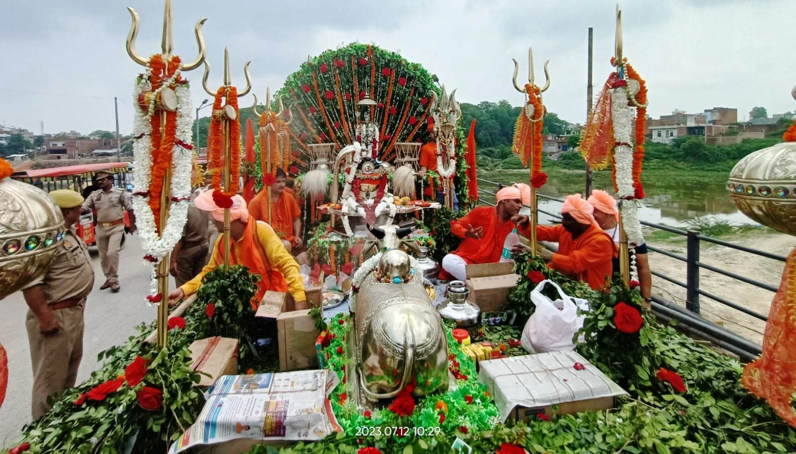 नगर पालिका अध्यक्ष के प्रतिनिधि डा. रामसूरत मौर्य ने नारियल फोड़कर यात्रा का आंरभ किया। शोभा यात्रा में हाथी घोड़ा, डीजे, शिव की झांकी, 12 ज्योर्तिलिंग की झांकी, मुख्य आकर्षण का केन्द्र रही। संघ के अध्यक्ष सुधीर कुमार साहू ने कहा कि श्रावण मास में पूरा वातावरण शिवमय हो जाता है। भगवान शिव भेले है जल्द भक्तों पर प्रसन्न हो जाते है। भेले नाथ के पूजन से राष्ट्र धर्म तथा समाज का भी कल्याण होता है। शोभा यात्रा नगर के मुख्य मार्गो से सद्भावना पुल, ओलन्दगंज, मैहर मन्दिर, पालिटेकनिक चौराहा, ओलन्दगंज, कोतवाली चौराहा होते हुए सुतहट्टी से भण्डारी स्टेशन पर फरक्का ट्रेन से हजारों की संख्या में भक्त रवाना हुए। इसमें बड़ी संख्या में पीेले परिधान पहने भक्त शामिल रहे।