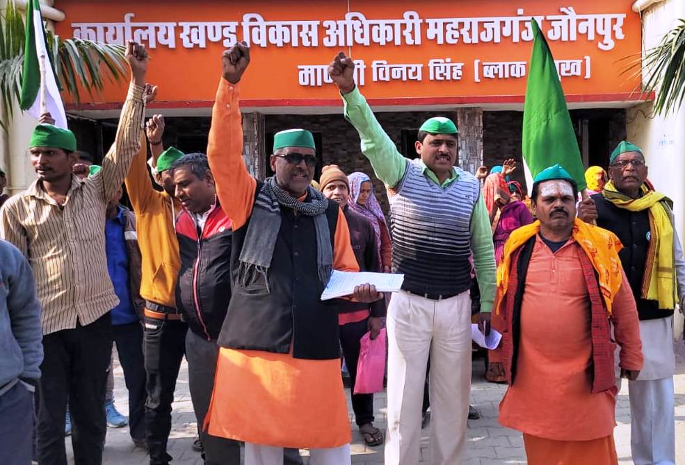 जौनपुर धारा, महराजगंज। स्थानीय ब्लॉक परिसर में भारतीय किसान यूनियन (अराजनैतिक) गुट की बदलापुर तहसील इकाई ने बुधवार को किसानों, गरीबों व मजदूरों की समस्या को लेकर पंचायत का आयोजन किया। मुख्यमंत्री को सम्बोधित ज्ञापन खण्ड विकास अधिकारी के गैर मौजूदगी में सम्बंधित अधिकारी को सौपा गया। प्रदर्शन के दौरान जिलाध्यक्ष राजनाथ यादव ने कहा कि सरकारी योजनाओं का लाभ किसानों को नहीं मिल रहा है उसकी बंन्दरबाट की जा रही है उसकी जांच करायी जाय। पंचायत के अंत में सात सूत्रीय माँग में महंगाई और भ्रष्टाचार पर रोक लगाई जाए, मरखापुर से डॉक्टर भीमराव अंबेडकर की मूर्ति के पास से होकर मीरापुर जाने वाली सड़क की जांच कराई जाए, वहीं सामुदायिक स्वास्थ्य केंद्र पर सभी विभागों के डॉक्टर उपलब्ध कराए जाएं, सभी पात्रों को प्रधानमंत्री आवास योजना से लाभान्वित किया जाए, प्रत्येक ग्राम सभाओं में पात्र व्यक्तियों का कटे हुए आवास की पुन: जांच कराई जाए, स्थानीय ब्लाक अंतर्गत एडिशनल अस्पतालों पर डॉक्टर उपलब्ध कराए जाएं व सभी सहकारी समितियों पर खाद उपलब्ध कराई जाए। कार्यक्रम की अध्यक्षता तहसील अध्यक्ष लालचंद यादव वह कार्यक्रम का संचालन महामंत्री डॉ. मनोज कुमार यादव ने किया। इस मौके पर भारतीय किसान यूनियन के पदाधिकारी मीडिया प्रमुख सियाराम उपाध्याय, धर्मेंद्र यादव, रामजीत, चंद्रभान, रामाश्रय, अरविंद, सफी गुड्डू, मन्नूलाल, शारदा, मंजू, नंदलाल, इंद्रावती, रिचा सहित यूनियन के लोग उपस्थित रहे।