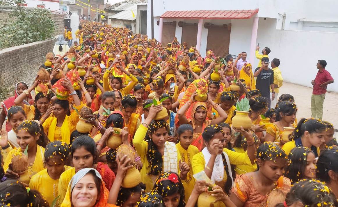 भागवत कथा से पूर्व निकली कलश यात्रा, उमड़ा जनसैलाब