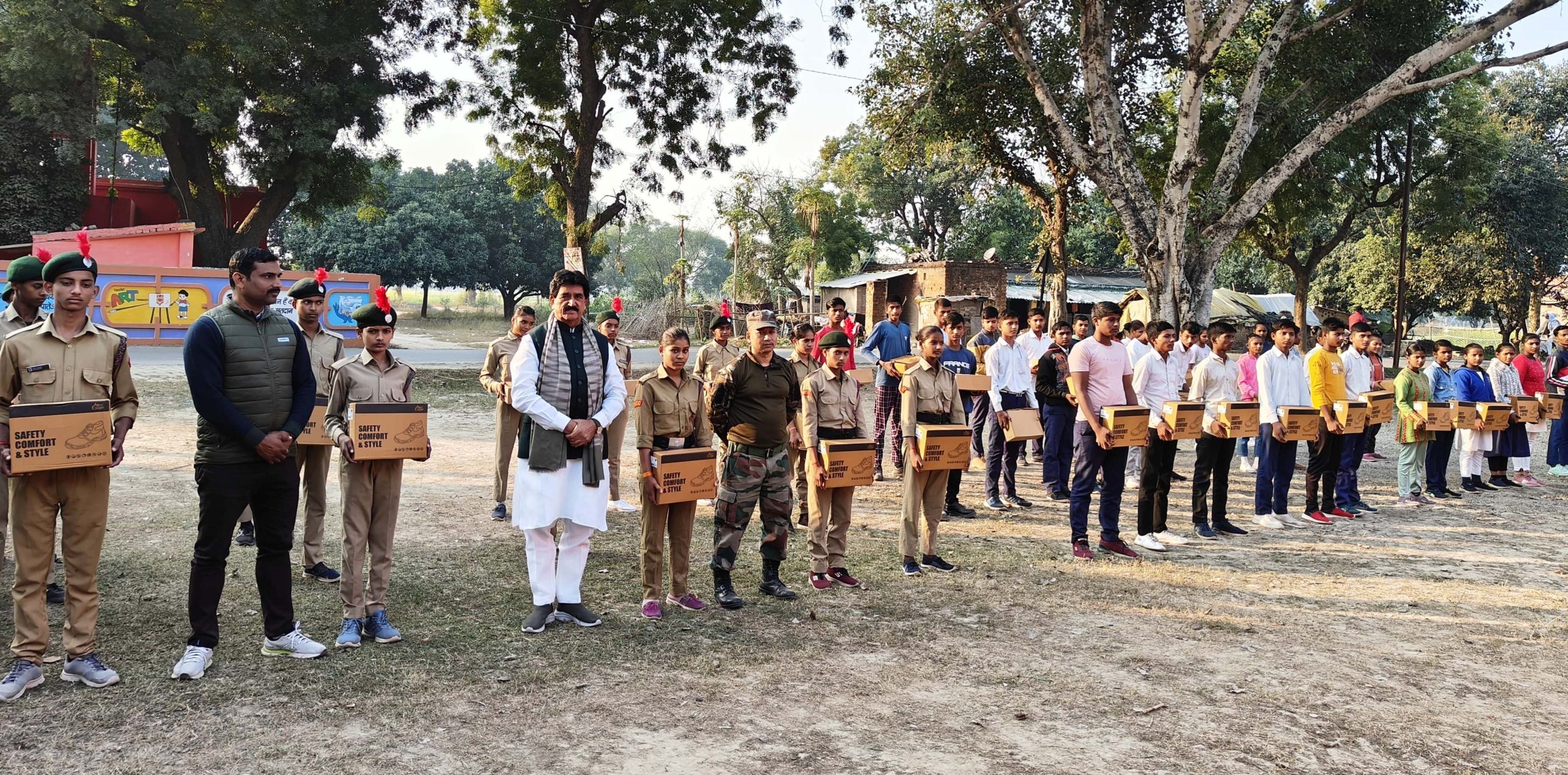 भाजपा नेता ज्ञान प्रकाश सिंह ने एनसीसी कैडेट्स को दिया बूट्स