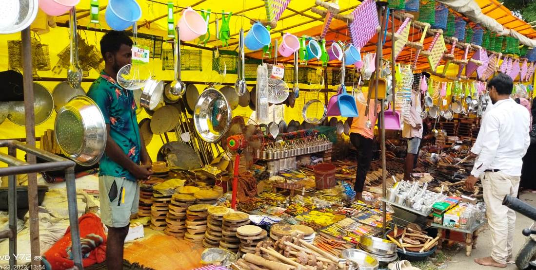 भादो छठ मेला के एक दिन पूर्व सजी कृषी यन्त्रो की दुकानें