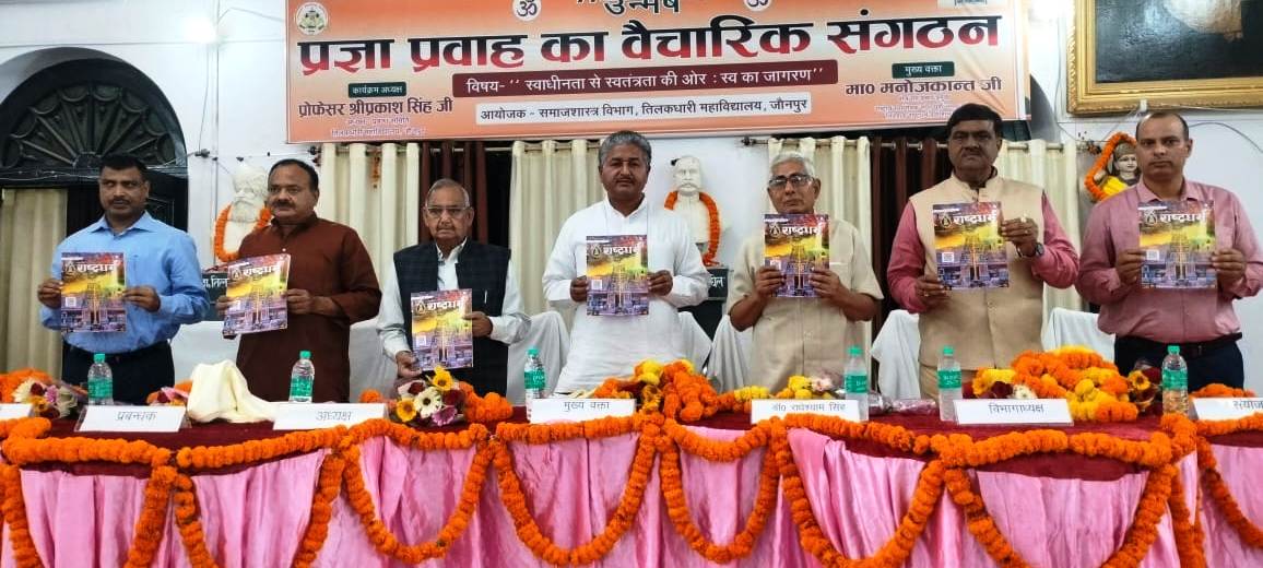 जौनपुर धारा, जौनपुर। तिलकधारी स्नातकोत्तर महाविद्यालय जौनपुर में समाजशास्त्र विभाग एवं प्रज्ञा प्रवाह (उन्नमेष) द्वारा सयुक्त तत्वाधान में राष्ट्रीय संगोष्ठी आयोजित की गई, जिसका शीर्षक स्वाधीनता से स्वतंत्रता की तरफ स्वय का जागरण पर आधारित था। मुख्य वक्ता क्षेत्रीय सह प्रचार प्रमुख मनोज कांत रहे। कार्यक्रम की अध्यक्षता महाविद्यालय प्रबंध समिति के अध्यक्ष प्रोफेसर श्रीप्रकाश सिंह ने किया। मुख्य वक्ता मनोज कांत ने कहा कि भारतीय संस्कृत वसुधैव कुटुंबकम की परंपरा पर संपूर्ण विश्व का मार्गदर्शन करने का सामर्थ्य रखती है। उन्होंने कहा कि हम स्वाधीन तो हुए परंतु शासन प्रशासन में स्व. तंत्र का अभी भी अभाव है। समाज को दिशा देने वाली शिक्षा पर बोलते हुए उन्होंने कहाकि वर्तमान शिक्षा प्रशासनिक तंत्र पर आधारित है और हमारी प्राचीन शिक्षा संस्कृति पर आधारित थी, इसलिए उसमें समर्पण था और आज तंत्र पर आधारित है इसलिए समर्पण की इसमें कमी है। कार्यक्रम की अध्यक्षता करते हुए प्रो. श्री प्रकाश सिंह ने कहा कि वर्तमान समाज के लोगों में स्वतंत्र रहते हुए अपने देश और संस्कृति के प्रति आत्मचिंतन एवं आत्मासात करने की जरूरत है तभी स्वाधीनता से स्वतंत्रता का स्वरूप परिलक्षित होगा। विषय प्रवर्तन करते हुए पूर्व प्राचार्य डॉ. राधेश्याम सिंह ने कहा कि आज वर्तमान में भारत देश की जो संस्कृति विरासत के रूप में मिली है उसमें हमारे पूर्वजों का बहुत बड़ा योगदान है। आए हुए अतिथियों का आभार व्यक्त करते हुए प्रबंधक राघवेंद्र प्रताप सिंह ने कहा कि आज हमें अपनी संस्कृति एवं सभ्यता से सीख कर उस पर जीने की दृढ़ इच्छा जरूरी है। प्रबंधक ने आए हुए अतिथियों के प्रति धन्यवाद ज्ञापित किया। आए हुए अतिथियों का स्वागत प्राचार्य प्रो. आलोक कुमार सिंह ने किया। सभी अभ्यागतों का परिचय कार्यक्रम के संयोजक डॉ. हरिओम त्रिपाठी ने किया। संपूर्ण कार्यक्रम समाजशास्त्र के विभागाध्यक्ष प्रोफेसर डॉ. राजीव रतन सिंह के नेतृत्व में संपन्न हुआ कार्यक्रम में पूर्व प्राचार्य डॉक्टर समर बहादुर सिंह, प्राचार्य प्रोफेसर सुरेश पाठक प्रो. अजय कुमार दुबे, डॉक्टर संतोष, डॉक्टर राज देव दुबे, डॉक्टर कीर्ति सिंह, डॉ. महेंद्र त्रिपाठी, प्रज्ञा प्रवाह के संतोष सिंह, सुशील सिंह, प्रो. सुषमा सिंह आदि उपस्थित रहे।