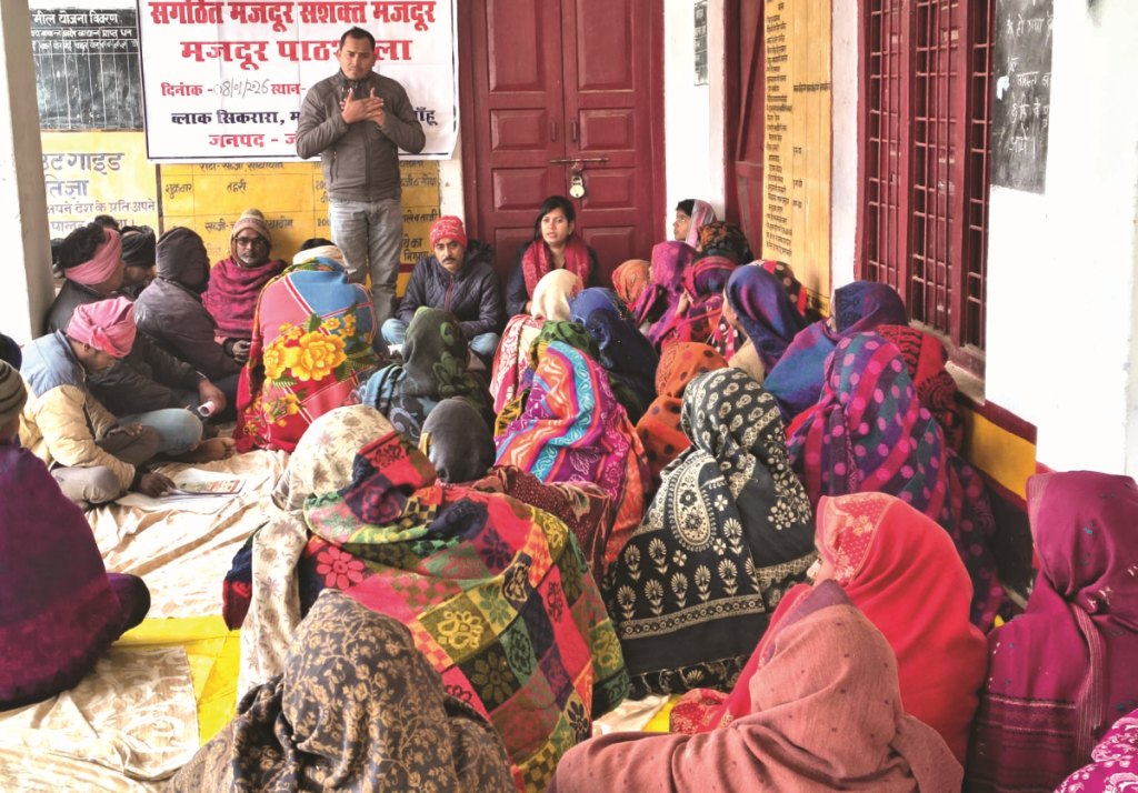 जौनपुर। एक्शन एड कर्नाटका प्रोजेक्ट द्वारा ग्राम पंचायत तुलापुर में असंगठित क्षेत्र के मजदूरों के साथ मजदूर पाठशाला का आयोजन किया गया। जिसमें मजदूरों को कानूनी जानकारी, पहचान, दस्तावेजों, श्रम पंजीकरण और सुरक्षा उपायों की जानकारी दी गई। कार्यक्रम में महाजनाली द्वारा बताया गया कि मजदूरों का किसी प्रकार का शोषण हो रहा है। तो उसकी तुरंत शिकायत दर्ज कराने की बात कही, साथ-साथ आधार कार्ड के साथ मोबाइल नंबर से जुड़ाव व मोबाइल नंबर बदलाव न करने का सुझाव दिया गया साथ साथ श्रम विभाग द्वारा संचालित कल्याणकारी योजनाओं पर जागरूकता व योजनाओं से निरन्तर जुड़ाव की बात कही। कार्यक्रम में बीनू द्वारा बताया गया कि महिलाओं को समान कार्य के लिए समान वेतन पर अपनी बात को रखा साथ साथ महिलाओं के साथ कार्यस्थल पर होने वाले यौन उत्पीड़न पर कानूनी जानकारी पर बात करते हुए कहा कि इसकी शिकायत आप तुरंत दर्ज कराएं, चुप्पी को तोड़ना है। जिससे सभी महिला मजदूरों को सम्मान पूर्वक काम व दाम मिल सके। कार्यक्रम में बंसीलाल द्वारा मजदूरों को श्रम कानूनों की बुनियादी जानकारियों से अवगत कराया गया कार्यक्रम में, मंजीत प्रजापति, सत्यप्रकाश, सतीश कुमार, दयाशंकर, सुनिल कुमार कन्नौजिया आदि ने अपने विचार रखा, कार्यक्रम में कुल 62 मजदूरों ने प्रतिभाग किया।