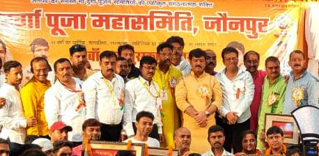 जौनपुर धारा, जौनपुर। जनपद की केंद्रीय कमेटी श्रीदुर्गा पूजा महासमिति का 44वां पुरस्कार वितरण एवं सम्मान समारोह मां के जयकारे के साथ मुख्य अतिथि श्रीकला रेड्डी अध्यक्ष जिला पंचायत एवं विशिष्ट अतिथि बृजेश सिंह प्रिशु सदस्य विधान परिषद की गरिमामय उपस्थिति में संपन्न हुई। आयोजन के प्रथम चरण में मां भगवती की प्रतिमा पर पुष्पांजलि अर्पित कर दीप प्रज्वलन के साथ प्रारंभ हुआ।तदोपरांत मुख्य अतिथि को पुष्पगुच्छ तथा विशिष्ट अतिथि को माल्यार्पण कर सम्मानित किया गया। इस मौके पर जनपद के भजन गायक रविंद्र सिंह ज्योति, अभिषेक मयंक, आशीष पाठक के देवी गीतों ने आयोजनों को भक्तिमय कर दिया। द्वितीय चरण में श्री दुर्गा पूजा महासमिति के निर्णायक मण्डल सदस्य विवेक सिंह, अवनींद्र तिवारी, योगेश प्रताप सिंह, प्रदीप श्रीवास्तव एडवोकेट, अल्पना जयसवाल को तथा जनपद की समाजसेवी संगठनों, धार्मिक संगठनों, लंगर समितियां, विश्व रक्तदान दिवस की पूर्व संध्या पर रक्तदान करने वाले रक्तदाताओं को महासमिति द्वारा स्मृति चिन्ह प्रदान कर सम्मानित किया गया। विशिष्ट अतिथि के रूप में अपने उद्बोधन में बृजेश सिंह प्रिशु सदस्य विधान परिषद ने कहा कि पूजन समितियां पूरे अनुशासन और विधि-विधान से माँ की पूजन अनुष्ठान को संपन्न करें शासन एवं जिला प्रशासन से जो भी सहयोग होगा उसके लिए मैं प्रयासरत रहूंगा। इसी क्रम में मुख्य अतिथि जिला पंचायत अध्यक्ष श्रीकला रेड्डी ने नवरात्रि की शुभकामनाएं दी। महासमिति की संगठनात्मक संरचना की प्रशंसा करते हुए कहा कि शारदीय नवरात्रि की तैयारी में पूर्ण सहयोग रहेगा। सम्मान समारोह के अंतिम चरण में वर्ष 2022 के शारदीय नवरात्र में आकर्षक सजावट के लिए पूजन समितियों को सम्मानित किया गया। जिसमें पूजन व पडाल व्यवस्था में प्रथम पुरस्कार नवयुग संस्था श्रीगोसाई रामलीला मैदान उर्दू बाजार, द्वितीय पुरस्कार महाशक्ति संस्था गौशाला परिसर तृतीय त्याग संस्था कोतवाली चौराहा, नवयुग धर्म कल्याण समिति अहियापुर तथा झांकी व्यवस्था में प्रथम मां अष्टभुजी संस्था कन्हईपुर, द्वितीय पुरस्कार जय मां शीतला दुर्गा पूजा समिति रसूलाबाद, तृतीय रासमंडल दुर्गा पूजा समिति एवं भारतीय दुर्गा पूजा समिति जहांगीराबाद तथा चतुर्थ पुरस्कार नवीन नाव रात्रि संस्था भंडारी माल गोदाम एवं दैनिक मार्ग सजावट में प्रथम मयंजली संस्था मियापुर, द्वितीय बजरंग दुर्गा पूजा समिति ताड़ताल, तृतीय श्री दुर्गा पूजा समिति फल वाली गली ओलंदगंज एवं भारतीय दुर्गा पूजा समिति जहांगीराबाद तथा चतुर्थ मां अष्टभुजी संस्था कन्हईपुर एवं शोभा यात्रा में झांकी व्यवस्था हेतु प्रथम कल्याण संस्था, द्वितीय सरस्वती बल ज्ञान संस्था ढालघर टो