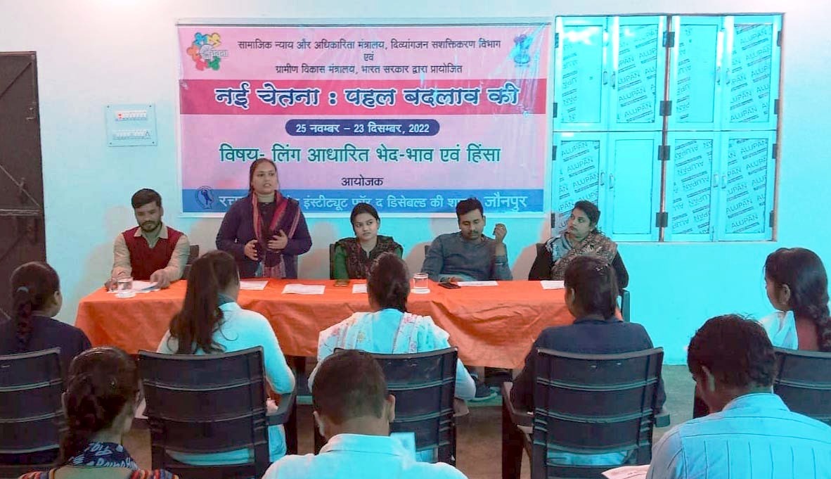 जौनपुर धारा, जौनपुर। सामाजिक न्याय और अधिकारिता मंत्रालय, दिव्यांगजन सशक्तिकरण विभाग एवं ग्रामीण विकास मंत्रालय भारत सरकार द्वारा आयोजित नई चेतना-पहल बदलाव की कार्यक्रम के अंर्तगत बुधवार को रमानाथ महाविद्यालय ईशापुर में रचना विशेष विद्यालय की तरफ से जागरूकता कार्यक्रम का आयोजन किया गया। महिलाओं को आत्म निर्भर बनने हेतु विषय पर विद्यालय की विशेष शिक्षिका दामिनी यादव ने सम्बोधित करते हुए कहाकि महिलाओं को समाज में स्वयं को सुरक्षित रखने का कार्य आरपीडब्ल्यूडी 2016 एक्ट में विधिवत कही गयी है। बालिकाएं अपने को कमतर न समझें। इसी क्रम में रमानाथ महाविद्यालय की प्रवक्ता रेनू गुप्ता ने कहाकि इस एक्ट के आ जाने से समाज में हर वर्ग की महिलाएं एवं दिव्यांग महिलाएं बहुत सशक्त होंगी। प्रवक्ता स्वाती साहू ने विद्यालय की समस्त छात्राओं को इस एक्ट के बारे में तथा उनके अधिकार के बारे में विस्तृत रूप से जागरूक किया। दिव्यांग महिलाओं को उनके अधिकार एवं सुरक्षा विषय पर विस्तृत जानकारी मुख्य समन्वयक सुनील कुमार गुप्ता ने दी। सर्वेश मौर्या ने कार्यक्रम में आए हुए समस्त अतिथियों एवं छात्र-छात्राओं को धन्यवाद एवं आभार ज्ञापित किया।