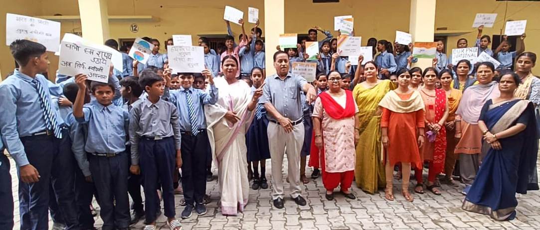 • बच्चों ने तख्ती लेकर निकाली पद यात्रा