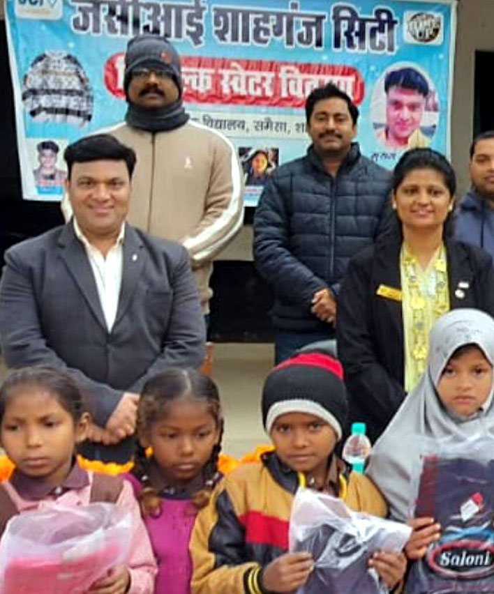जौनपुर धारा,शाहगंज। मानव मात्र की सेवा ही इस पृथ्वी का सबसे पुनीत और सर्वोत्तम कार्य है इसके करने से मन को असीम शांति एवं संतोष का अनुभव होता है।उक्त बातें जेसीआई सिटी द्वारा आयोजित स्वेटर वितरण कार्यक्रम में कार्यक्रम के मुख्य अतिथि मनोज अग्रहरि ने समैसा स्थित प्राथमिक विद्यालय में कहा। इस कार्यक्रम में कुल 125बच्चों को स्वेटर वितरित किया गया जिसको पा कर उन बच्चों के चेहरे खिल गए तथा बच्चों में चॉकलेट भी वितरण किया गया। विशिष्ट अतिथि अविनाश ने कहा इस तरह के कार्यक्रम सभी को आयोजित करने चाहिए जिससे मानव मात्र की सेवा हो सके। अध्यक्ष दीपा सेठ ने बताया संस्था ठंड के मौसम में हर वर्ष जरूरतमंद बच्चों को स्वेटर वितरित करती है। कार्यक्रम के अंत में प्रधानाचार्य प्रदीप कुमार सिंह ने आए हुए सभी आगंतुकों को धन्यवाद ज्ञापित किया। आयोजन में पूर्व अध्यक्ष दिवाकर मिश्रा रुचि राव रामावतार अग्रहरि आशीष जायसवाल रौनक मोदनवाल आदि लोग प्रमुख रूप से मौजूद रहें।