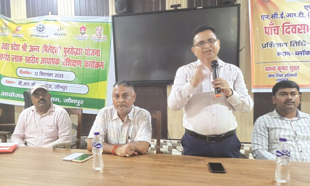 जौनपुर। कृषि विभाग ने शुक्रवार को विकास खण्ड शाहगंज स्थित बीआरसी सभागार में उत्तर प्रदेश मीलेटस पुनरोद्धार योजना अन्तर्गत स्कूल अध्यापकों का प्रशिक्षण कार्यक्रम आयोजित किया गया। जिसमें श्रीअन्न के महत्व एवं उपयोगिता से अध्यापकों को प्रशिक्षित किया गया। प्रशिक्षक उप परियोजना निदेशक आत्मा डॉ.रमेश चंद्र यादव ने अध्यापकों को सम्बोधित करते हुए कहा कि सरल शब्दों में कहें तो गेहूं और चावल को छोड़कर ज्वार, बाजरा, मक्का, सावा, कोदो, रागी, जौ, जई आदि को मोटे अनाज में शुमार किया जाता है। गेहूं और चावल की तुलना में मोटे अनाजों की सतह तुलनात्मक रूप से खुरदरी होती है। आहार व पोषण विशेषज्ञ मोटे अनाजों की खूबियों से इतने प्रभावित हैं कि इन्हें सुपरफूड्स के रूप में मान्यता दे रहे, अध्यापक अपने विद्यालय के क्षात्रध्क्षात्राओ को मोटे अनाज की उपयोगिता से जागरूक करें ताकि उनके परिजन मोटे अनाज की खेती करें, श्रीअन्न को एमडीएम में भी शामिल किया जाएगा। उन्होंने कहा कि मोटे अनाजों की उपयोगिता को देखते हुए सरकार ने श्रीअन्य योजना का नाम दिया है। दूसरे अनाजों की तरह ही मोटे अनाज चीला, खीर, खिचड़ी, दलिया, कटलेट, सूप,उपमा, डोसा, इडली, बिस्कुट स्नेक्स, चिक्की आदि रूपो में खाया जा सकता है। खण्ड शिक्षा अधिकारी बसन्त कुमार शुक्ल ने कहा कि श्रीअन्न से बने खाद्यान्न एमडीएम में सम्मिलित किए जाने से बच्चों के वेहतर स्वास्थ्य के साथ मीलेट्स पुनरोद्धार को बढ़ावा मिलेगा, स्कूल छात्रों एवं छात्राओं के माध्यम से उनके अभिभावकों को मिलेटस के उपभोग हेतु जागरूक किया जाएगा। कृषि वैज्ञानिक डॉ.हरिओम वर्मा ने कहा कि इंडियन इंस्टीट्यूट ऑफ मिलेट्स रिसर्च (आईआईएमआर) हैदराबाद के अनुसार मोटे अनाज सिलिएक डिजीज के इलाज में लाभ प्रद है। मोटे अनाजों में फाइबर की प्रचुरता उन्हें मधुमेह और मोटापे से बताती है। मोटे अनाजों का ग्लाइसेमिक इंडेक्स कम होता है तभी मधुमेह व हृदय रोगियों को खाने की सलाह दी जाती है। कार्यक्रम की अध्यक्षता शिक्षक संघ के डा.अरविन्द सिंह तथा संचालन एडीओ एजी.धर्मेन्द्र कुमार ने किया।