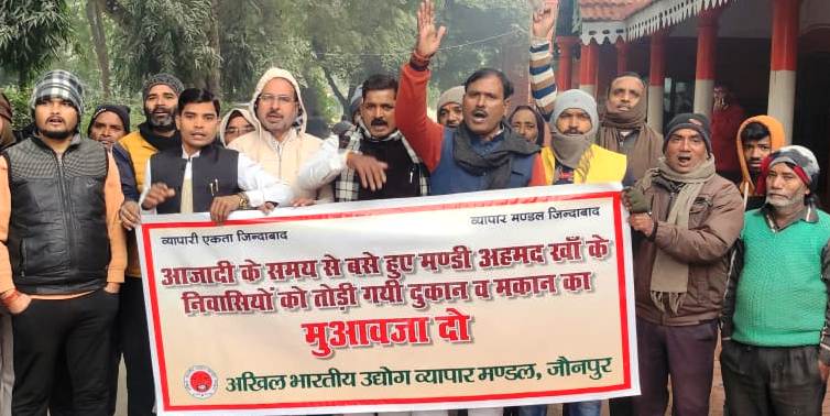 जौनपुर धारा, जौनपुर। आजादी के पहले से बसे नगर के मण्डी अहमद खां के निवासियों के तोड़े गये मकान व दुकान का उचित मुआवजा दिलाये जाने की मांग को लेकर अखिल भारतीय उद्योग व्यापार मण्डल के जिलाध्यक्ष श्रवण जायसवाल ने बुधवार को जिलाधिकारी को ज्ञापन सौंपा। ज्ञापन के माध्यम से श्री जायसवाल ने कहा कि उक्त मोहल्ले में तोड़े गये मकान व दुकान के मुआवजे के लिये प्रशासनिक अधिकारियों द्वारा कहा गया लेकिन अभी तक पीड़ितों के मुआवजे की निर्धारित धनराशि उनको नहीं मिल पायी। पीड़ितों के अनुसार अधिकारियों ने यह भी कहा था कि जांच कर मुआवजे की राशि तय कर दी जायेगी लेकिन अभी तक उक्त विषय पर प्रशासन की तरफ से कोई भी इस तरह के सकारात्मक संदेश नहीं मिल पाये हैं कि मुआवजा दिया ही जायेगा। व्यापारी नेता श्री जायसवाल ने कहा कि प्रशासन के तानाशाही के बल पर जिस प्रकार बगैर मुआवजे की राशि तय किये लोगों के मकानों/दुकानों को ठण्ड के इस समय मौसम में तोड़ दिया गया है, यह मानवता के विपरीत है। अगर समय रहते मुआवजे की राशि तय कर पीड़ितों को उपलब्ध नहीं करायी गयी तो व्यापार मण्डल सड़क पर उतरकर आन्दोलन करने को बाध्य होगा जिसकी सारी जिम्मेदारी शासन-प्रशासन की होगी। इस अवसर पर अमरनाथ मोदनवाल, संजीव साहू, नितेश साहू, जीशान खान, धर्मेन्द्र सोनकर, सुनील चौरसिया, मेंहदी हैदर, कन्हैया यादव, आलोक कुमार, महेश गुप्ता, राम प्रसाद अग्रहरि सहित तमाम व्यापारी मौजूद रहे।