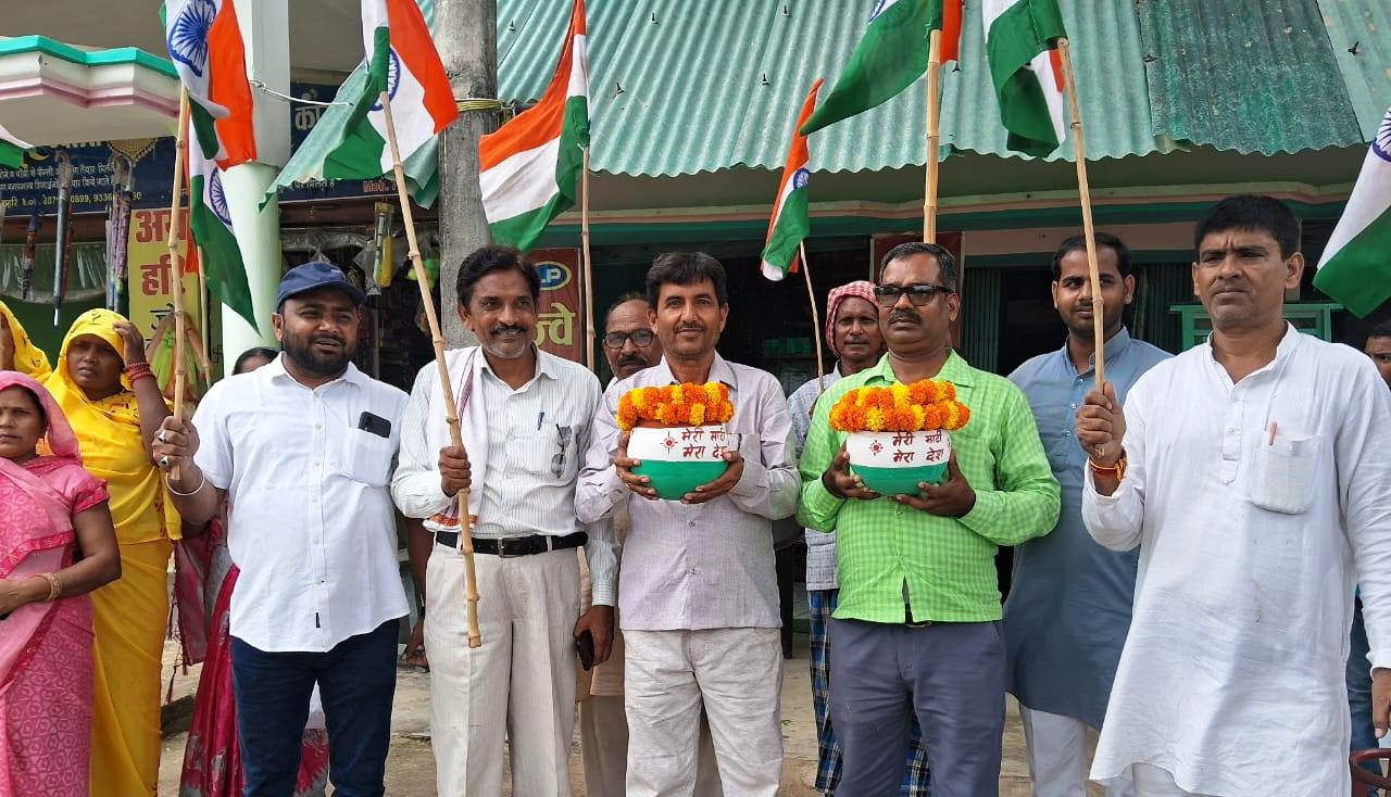जौनपुर धारा, खुटहन। ‘मेरी माटी मेरा देश’ के तहत ग्राम पंचायत इमामपुर में मंत्री प्रतिनिधि अजय सिंह के नेतृत्व में कलस यात्रा निकाली गई। जिसमें घर घर जाकर मिट्टी इकट्ठा किया गया। गांव भ्रमण के बाद प्राथमिक विद्यालय पर प्रण सभा किया गया। इस मौके पर संतलाल सोनी प्रधान, मदन सोनी, मण्डल अध्यक्ष बलिहारी राजभर, जगन्नाथ यादव, संदीप सिंह, महेद्र प्रताप सिंह, विनोद सोनी, संजीव गुप्ता, हरिश्चंद्र, डा.इद्रसेन मौर्य, अनिल चौधरी, मुन्नी सोनी, रीता, निशा, अरबिद, सहादूर, धीरज, अनिश, सुमित सिंह सहित आदि लोग मौजूद रहें।