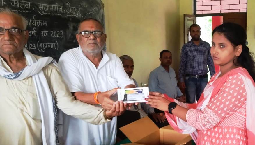 जौनपुर धारा, सुजानगंज। स्थानीय क्षेत्र के सरोज विद्याशंकर कन्या महाविद्यालय के परिसर में अध्यनरत-67 विद्यार्थियों को स्मार्ट फोन वितरण किया गया। मोबाइल फोन पाकर बच्चों के चेहरे खिल उठे। वितरण कार्यक्रम में कालेज के प्रबंधक विद्याशंकर तिवारी ने अपने संबोधन में बताया कि भाजपा सरकार द्वारा महत्वपूर्ण जनकल्याणकारी योजनाएं चलाई जा रही है। उन्होंने भाजपा सरकार को धन्यवाद ज्ञापित करते हुए कहा कि सरकार की ऐसी सोच है कि अध्यनरत बच्चे इस मोबाइल फोन से अपना भविष्य संवार सकते हैं। यदि मोबाइल का दुरुपयोग करेंगे तो जीवन में सफलता नहीं मिलेगी। मोबाइल का सदुपयोग करने वाले उन सभी बच्चों को सफलता अवश्य मिलेगी। उन्होंने बताया कि अब चाइना ने नवयुवकों को रात 10 बजे से सुबह 6 बजे तक मोबाइल चलाने पर पाबंदी लगा दी है, जो विद्यार्थी लक्ष्य बनाकर अपनी पढ़ाई करेंगे निश्चित ही उन्हें सफलता मिलती रहेगी। इस अवसर पर प्राचार्य राज बहादुर यादव, शिक्षक सुभाष मोदनवाल, अनुपम द्विवेदी, मुकेश श्रीवास्तव, अरविंद कुमार मिश्रा, सरस्वती, सहित छात्र-छात्राएं आदि प्रमुख रूप से मौजूद रहे। कार्यक्रम का संचालन शिवनारायण शर्मा ने किया।