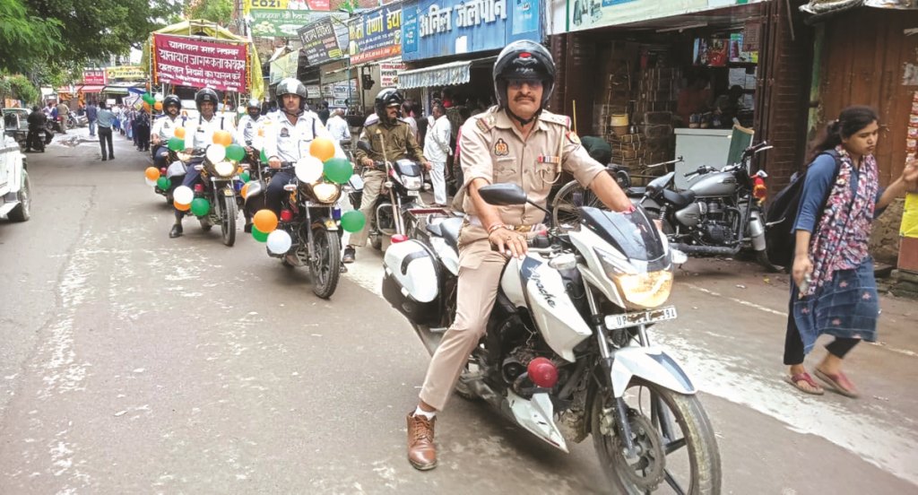 - पुलिस के साथ स्कूली बच्चों ने नगर में लोगों को किया जागरूक