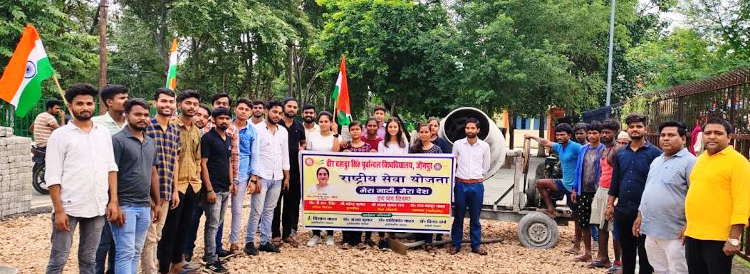 जौनपुर धारा, जौनपुर। वीर बहादुर सिंह पूर्वांचल विश्वविद्यालय के राष्ट्रीय सेवा योजना प्रकोष्ठ परिसर इकाई द्वारा मेरा माटी मेरा देश कार्यक्रम के अंतर्गत प्रधानमंत्री की सोच के अनुरूप हर घर पर तिरंगा लहराने के लिए विश्वविद्यालय के स्वयंसेवक एवं स्वयं सेविकाओं द्वारा ग्रामीण लोगों को विभिन्न माध्यमों से जागरूक करने का कार्य कर रहे है। कार्यक्रम के मुख्य अतिथि समन्वयक राष्ट्रीय सेवा योजना डॉक्टर राजबहादुर यादव ने कहा कि राष्ट्रीय सेवा योजना का स्वयंसेवक एवं सेविका को अपने व्यक्तित्व के विकास के साथ-साथ अपने देश की मिट्टी से जुड़े रहने की जरूरत है तभी हम देश को आगे बढ़ाने में अपनी अहम भूमिका निभा सकते हैं। हमारे देश के युवा में बहुत शक्ति है जिसका प्रयोग करके हम अपने देश को ऊंचाइयों तक पहुंचा सकते हैं। स्वयंसेवक एवं सेविकाओं द्वारा रंगोली प्रतियोगिता का आयोजन किया गया जिसमें प्रथम स्थान पर रवींद्र कुमार प्रजापति, सत्यम सिंह, द्वितीय स्थान पर अभिषेक कुमार, अजीत वर्मा, तृतीय स्थान पर प्रिया, बबिता रही। रंगोली प्रतियोगिता के निर्णायक मंडल के रूप में भूमिका निभाई कार्यक्रम अधिकारी विशाल यादव फार्मेसी के छात्रों द्वारा सांस्कृतिक कार्यक्रम की भी प्रस्तुति की गई जिसमें मिट्टी से जुड़े हुए हम हिंदुस्तानियों के बारे में दर्शाया गया। तीसरा कार्यक्रम पोस्टर प्रतियोगिता का भी आयोजन किया गया जिसमें प्रथम स्थान पर नम्रता यादव, शेषाद्रि राय, बबिता, द्वितीय स्थान पर उमंग श्रीवास्तव, अमन कुमार, तृतीय स्थान अंकित चौधरी, मोनू गौतम। निर्णायक मंडल की भूमिका डॉ. अजय कुमार मौर्या ने किया। चौथा कार्यक्रम फार्मेसी के छात्रों द्वारा सांस्कृतिक कार्यक्रम का आयोजन किया गया जिसकी अगुवाई नितेश कुशवाहा द्वारा किया गया। संचालन डॉक्टर विनय वर्मा ने किया और धन्यवाद ज्ञापन कार्यक्रम अधिकारी डॉक्टर दिनेश कनौजिया ने किया। कार्यक्रम में डॉक्टर शशिकान्त यादव, अंकित सोनकर ‘आभास’, उमंग श्रीवास्तव, अजीत वर्मा, आलोक कुमार मौर्य, पवन कुमार भास्कर, अभिषेक कुमार, रीतिषेक, प्रभात आदि उपस्थित रहे।