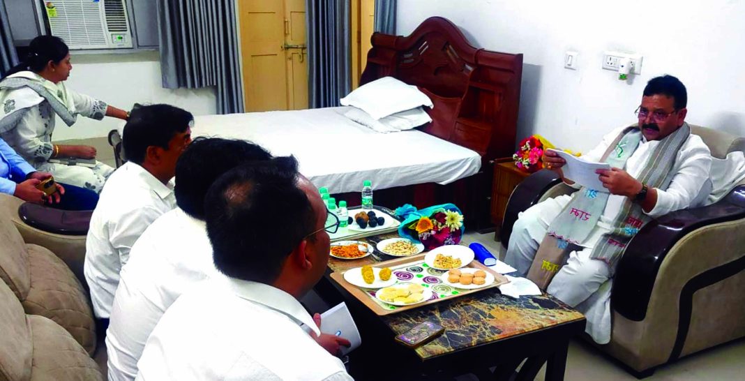 जौनपुर धारा,जौनपुर। राज्यमंत्री रविंद्र जायसवाल द्वारा पीडब्ल्यूडी गेस्ट हाउस में स्टांप पंजीयन एवं न्यायालय के संबंध में विभागीय अधिकारियों के साथ बैठक की। इसके पूर्व राज्यमंत्री के जनपद आगमन पर जिलाधिकारी डॉ.दिनेश चंद ने पुष्पगुच्छ तथा अंगवस्त्रम प्रदान कर स्वागत किया।