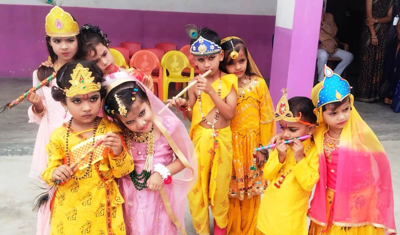 राधा कृष्ण के रूप में सजे बच्चों ने मोहा मन