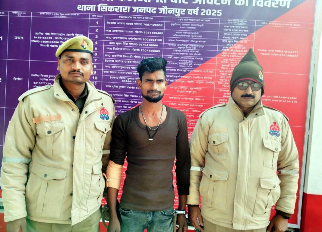 जौनपुर धारा,जौनपुर। शनिवार को सिकरारा थाना प्रभारी निरीक्षक व उ.नि.आनन्द कुमार राय ने हमराही के साथ गोवध निवारण अधिनियम व पशु क्रुरता निवारण अधिनियम के वांछित अभियुक्त मोनू सरोज को सूचना पर गिरफ्तार कर अग्रेतर विधिक कार्यवाही की गई, साथ पुलिस अभियुक्त के अन्य आपराधिक इतिहास की जानकारी बटोरने के चक्कर में पड़ी है। उक्त अवसर पर प्रभारी निरीक्षक अमित कुमार सिंह, उ.नि.आनन्द कुमार राय, हे.कां. सन्तलाल, अभिमन्यु यादव रहें।