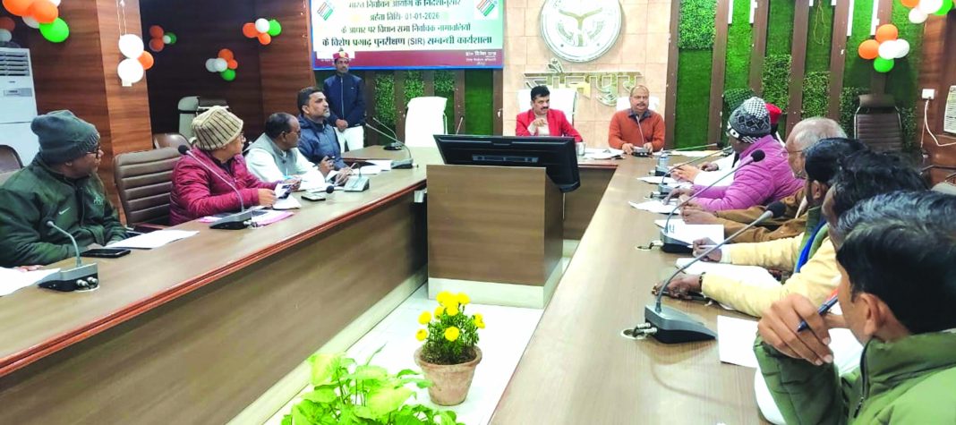 जौनपुर। जिलाधिकारी डॉ.दिनेश चंद्र की अध्यक्षता में विशेष प्रगाढ़ पुनरीक्षण के संबंध में बैठक कलेक्ट्रेट सभागार में संपन्न हुई। भारत निर्वाचन आयोग के निर्देश के क्रम में जिला निर्वाचन अधिकारी ने बताया कि भारत निर्वाचन आयोग द्वारा जारी कार्यक्रम के अनुसार 06जनवरी से 06फरवरी तक दावे और आपत्तियां प्राप्त की जाएगी। आयोग के निर्देशानुसार विशेष प्रगाढ़ पुनरीक्षण में एन्यूमरेशन फॉर्म में प्राप्त कराए गए पुरानी फोटोग्राफ, ब्लर फोटोग्राफ की स्थिति में निर्वाचकों के फोटोग्राफ अपडेट किए जाएंगे। 11जनवरी को पूर्वाह्न 11:00बजे से सायं 4:00बजे तक बीएलओ द्वारा अपने से संबंधित बूथ पर उपस्थित होकर आलेख्य निर्वाचक नामावली को पढ़कर सुनाया जाएगा और नाम का सत्यापन किया जाएगा। यदि किसी निर्वाचक का नाम वर्ष 2025 की निर्वाचक नामावली में था और उनके द्वारा गणना प्रपत्र वापस नहीं किए गए हैं, तो ऐसे निर्वाचकों से फॉर्म-6 के साथ घोषणा पत्र भरवाते हुए निर्वाचकों का नाम सम्मिलित करने की कार्यवाही की जाएगी। आयोग द्वारा चार अर्हक तिथियां निर्धारित की गई है ऐसे युवा मतदाता जो 1 जनवरी 2026 को 18 वर्ष की आयु पूर्ण कर रहे हो और जिनका नाम मतदाता सूची में दर्ज नहीं है वह घोषणा पत्र के साथ फॉर्म-6 भर सकते हैं। जिला निर्वाचन अधिकारी ने समस्त मान्यता प्राप्त राजनीतिक दलों से अपेक्षा की कि अधिक से अधिक संख्या में युवाओं के फॉर्म-6 भरवाने हेतु बीएलए-2 को निर्देशित करे। उन्होंने बताया कि आयोग द्वारा चार अर्हक तिथियां निर्धारित की गई हैं। अत: दावे और आपत्तियां प्राप्त करने की अवधि के दौरान यदि कोई मतदाता 01 जनवरी को अर्हता तिथि के अतिरिक्त 01 अप्रैल, 01 जुलाई, एवं 01 अक्टूबर को अर्ह हो रहे हैं, तो उन सभी अर्ह मतदाताओं से फॉर्म-6 प्राप्त किया जाएगा। जिलाधिकारी ने बताया    कि आयोग के निर्देशानुसार निर्वाचन नामावली की किसी प्रविष्टि में संशोधन करने/मतदाता फोटो पहचान पत्र के प्रतिस्थापन/दिव्यांग मतदाताओं के चिन्ह्यांकन /निवास परिवर्तन की दशा में फॉर्म 8 एवं घोषणा पत्र भरकर संबंधित बीएलओ /निर्वाचन रजिस्ट्रीकरण अधिकारी कार्यालय में उपलब्ध कराया जा सकता है। इस अवसर पर भाजपा जिला,ध्यक्ष अजीत प्रजापति, सपा जिलाध्यक्ष राकेश मौर्या,  बीएसपी से चंद्रेज भारती, कांग्रेस पार्टी उपाध्यक्ष राकेश सिंह डब्बू, अपना दल एस से जयप्रकाश पटेल, सीपीआईएम से के एस रघुवंशी, आप से सुभाष चंद्र गौतम, कांग्रेस पार्टी से अली अंसारी,भाजपा से स्कंद कुमार पटेल, विजय कुमार पटेल, पियूष कुमार, सपा से हीरालाल विश्वकर्मा उपजिला निर्वाचन अधिकारी परमानंद झा सहित अन्य अधिकारी कर्मचारी उपस्थित रहे।