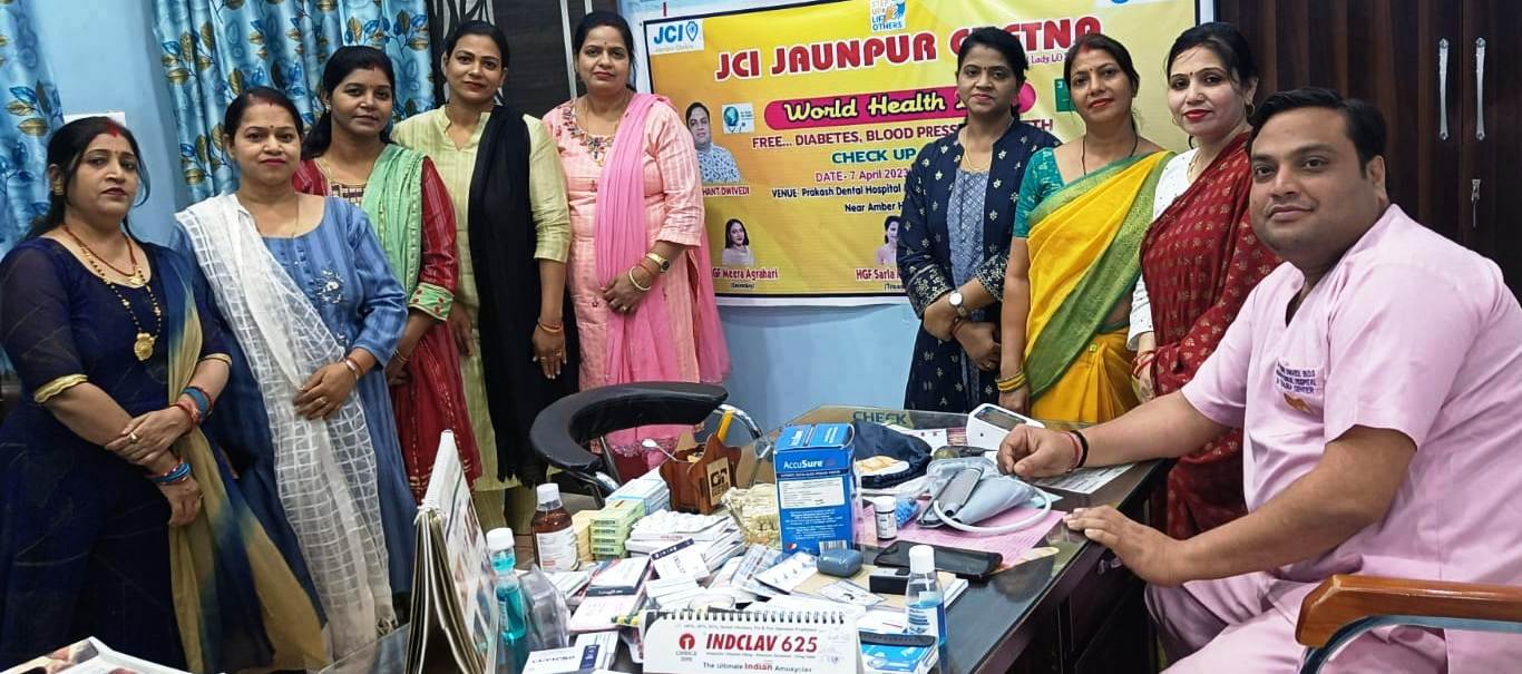 जौनपुर धारा, जौनपुर। जेसीआई जौनपुर चेतना ने विश्व स्वास्थ्य दिवस के अवसर पर कैंप लगाकर नि:शुल्क डायबिटीज, ब्लड प्रेशर और दांत का चेकअप मानिक चौक स्थिति डॉ. प्रशांत द्विवेदी के डेंटल हॉस्पिटल पर आयोजित किया। संस्था अध्यक्ष सोनी जायसवाल ने कहा कि आज विश्व स्वास्थ्य दिवस है सभी को अपने स्वास्थ्य के प्रति सचेत रहने की आवश्यकता है। समय-समय पर अपने स्वास्थ्य का चेकअप अवश्य कराना चाहिए। डॉ. प्रशांत द्विवेदी ने बताया कि प्रत्येक नागरिकों को वर्ष में एक बार अपने शरीर की जांच अवश्य करानी चाहिए जिसमें शुगर, ब्लड प्रेशर यह दोनों बहुत महत्वपूर्ण होते हैं विशेषकर 35 वर्ष की उम्र के बाद स्वास्थ्य पर विशेष ध्यान देना चाहिए। कैंप में संस्था सदस्यों के साथ लगभग 70 लोगों का नि:शुल्क जांच की गयी। कैंप में संस्था की सचिव मीरा अग्रहरि, मंजू जायसवाल, शारदा गुप्ता, मीनू बरनवाल, आकांक्षा द्विवेदी, ममता केसरवानी, किरण जायसवाल आदि उपस्थित रहीं। सभी का आभार डॉ. आकांक्षा द्विवेदी ने व्यक्त किया।