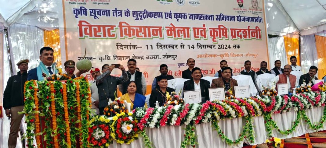 जौनपुर धारा, जौनपुर। कृषि विभाग द्वारा गुरुवार को कृषि विज्ञान केन्द्र बक्शा में कृषि सूचना तन्त्र के सुदृढ़ीकरण एवं कृषक जागरूकता कार्यक्रम के तहत चार दिवसीय विराट किसान मेला/गोष्ठी/प्रदर्शनी के दूसरे दिन का आयोजन किया गया। इसमें कृषि विविधीकरण द्वारा किसानों की आय दूनी करने के उपाय, फार्मर रजिस्ट्री, प्राकृतिक खेती, विपणन व्यवस्था, मृदा स्वास्थ्य, रबी फसलों के वेहतर उत्पादन वाली तकनीकीयो एवं लाभकारी कृषि योजनाओं से विशेषज्ञों द्वारा किसानों को प्रशिक्षित किया गया।