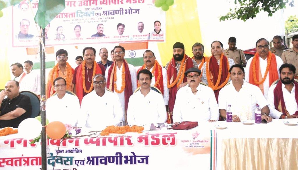 जौनपुर। नगर उद्योग व्यापार मण्डल द्वारा आयोजित श्रावणी भोज और झंडारोहण कार्यक्रम में मुख्य अतिथि के रूप में उपस्थित राज्यमंत्री गिरीश चंद्र यादव ने व्यापारियों की बातों को सुनने के बाद कहा कि किसी व्यापारी को अगर कोई अधिकारी परेशान कर रहा है तो वह मुझे व्यक्तिगत रूप से बताएं उनका नाम गुप्त रखा जाएगा और उस अधिकारी पर सख्त कार्रवाई होगी। यही सोच मुख्यमंत्री का भी है कि व्यापारियों को किसी भी रूप में प्रताड़ित नहीं किया जाए, कार्यक्रम की अध्यक्षता करते हुए नगर उद्योग व्यापार मंडल के अध्यक्ष राधेरमण जायसवाल ने सभी अतिथियों को पुष्प भेंट कर स्वागत करते हुए कहा कि व्यापारियों की प्रत्येक समस्याओं का निवारण के लिए व्यापार मंडल सदैव तत्पर रहेगा। विशिष्ट अतिथि के रूप में उपस्थित जिलाध्यक्ष दिनेश टण्डन ने सभी को स्वतंत्रता दिवस की बधाई देते हुए कहा कि व्यापारी हित की लड़ाई व्यापार मंडल निरंतर लड़ता रहेगा। प्रदेश उपाध्यक्ष सोमेश्वर केसरवानी एवं प्रदेश मंत्री महेंद्र सोनकर ने उपस्थित सभी व्यापारियों को 79स्वतंत्रता दिवस की बधाई दिया एवं हर समस्याओं के निवारण में उत्तर प्रदेश उद्योग व्यापार मंडल का संपूर्ण सहयोग का आश्वासन दिया। यह कार्यक्रम गोकुल घाट पुरानी बाजार में आयोजित किया गया। कार्यक्रम में व्यापार मंडल का निरंतर विशेष सहयोग करने वाले विमल भोजवाल, संतोष साहू, संजय केडिया, जगदीश चंद्र मौर्य गप्पू, सतीश गुप्ता, अशोक साहू, राकेश जायसवाल, मनमोहन सिंह, मनोज साहू, शिवम बरनवाल एवं यशवन्त साहू को नगर अध्यक्ष ने मुख्य अतिथि के हाथों सम्मानित किया। कार्यक्रम में मुख्य रूप से अशोक बैंकर, नन्हेंलाल वर्मा, मनोज अग्रहरि, अनिल जायसवाल, छब्बूलाल सोनकर, अशर्फी जायसवाल, श्याम चंद्र अग्रहरी, आशीष गुप्ता, हाजी अब्दुल अहद मुन्ने, जिला महामंत्री रामकुमार साहू, अरशद कुरैशी, युवा जिला अध्यक्ष संतोष अग्रहरि, फार्मेसी नगर महामंत्री मनोज कुमार साहू एवं मुन्नालाल अग्रहरि, युवा जिला महामंत्री गुप्ता शिशिर गुप्ता, रोशी सोनकर, विजय गुप्ता, साहिद मंसूरी, डी.के.अग्रहरी, गुलजारीलल गुप्ता, पंकज जायसवाल, हफिज शाह, मुकेश अग्रहरि, प्रियम वर्मा, घनश्याम जायसवाल, रामकुमार साहू, अतुल सिंह, ईशान जायसवाल, शशि श्रीवास्तव, सुग्रीव जायसवाल सहित आदि उपस्थित रहें।
