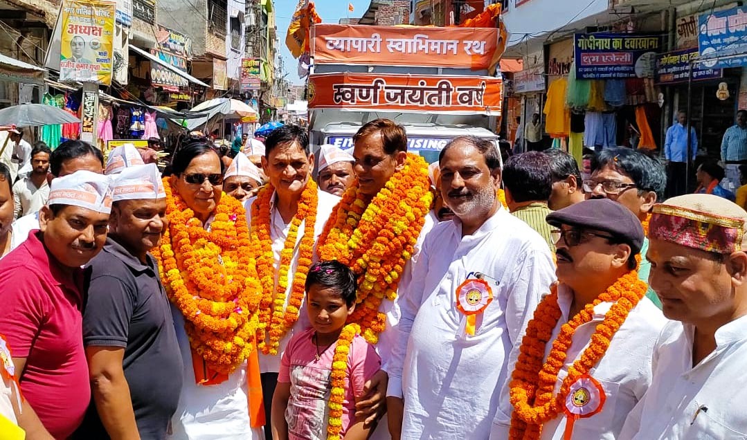 जौनपुर धारा, मुंगराबादशाहपुर। नगर में सोमवार को व्यापारियों ने स्वर्ण जयंती के अवसर पर 50 वर्ष पूर्ण होने पर व्यापारी स्वाभिमान यात्रा निकाली गई। क्षेत्रिय व्यापारियों ने व्यापारी एकता जिन्दाबाद के नारों के बीच प्रदेश अध्यक्ष मुकुन्द मिश्रा का माला पहनाकर गर्मजोशी से स्वागत किया। बताते चलें कि यह यात्रा उत्तर प्रदेश उद्योग व्यापार मंडल के गौरवशाली 50वर्ष पूर्ण होने पर स्वर्ण जयंती के उपलक्ष्य में व्यापारी स्वाभिमान यात्रा निकाली गई। जो विभिन्न स्थानों से होते हुए प्रतापगढ़ जिले से मुंगराबादशाहपुर नगर में प्रवेश किया। जहां सृष्टि पैलेस में नगर व्यापार मंडल के पदाधिकारियों ने प्रदेश अध्यक्ष मुकुन्द मिश्रा व जिलाध्यक्ष दिनेश टण्डन का फूल मालाओं से जोरदार स्वागत किया और जिलाध्यक्ष दिनेश टण्डन के नेतृत्व में यात्रा नगर में प्रवेश किया। इस दौरान जगह-जगह अपने प्रतिष्ठान पर माला पहनाकर प्रदेश अध्यक्ष का पुष्प वर्षा कर स्वागत किया। वहीं व्यापारी एकता जिंदाबाद के नारों से नगर गूंज उठा। व्यापारियों को सम्बोधित करते हुए प्रदेश अध्यक्ष ने कहा कि यह संगठन व्यापारियों के सुख दुःख में सदैव तत्पर मिलेगा और सभी व्यापारी निर्भीक होकर अपना व्यापार करें। यात्रा का गर्मजोशी से स्वागत उपरांत जौनपुर के लिए प्रस्थान किया। मुख्य रूप से तहसील अध्यक्ष विश्वामित्र गुप्त, तहसील महामंत्री दीपक शुक्ला, नगर अध्यक्ष आलोक कुमार गुप्त, राजीव केसरी, विश्वनाथ जायसवाल, शिव कुमार लल्ला, निशू केसरी, मोहम्मद जफर, अतहर जिया, कल्लू ऊमर वैश्य, नंदलाल ऊमर वैश्य, अनिल कुमार गुप्ता आदि यात्रा में शामिल रहे।
