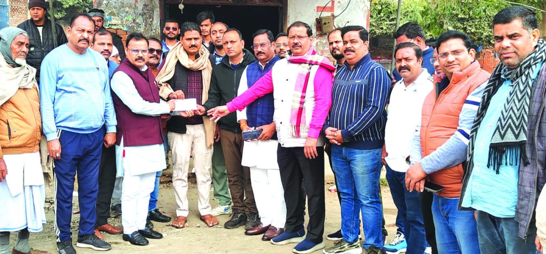 जौनपुर। कुछ दिन पूर्व ज़ारा कूलर बदलापुर पड़ाव स्थित सिराज अहमद के प्रतिष्ठान में हुई अग्निकांड की घटना में लगभग 15-20 लाख रुपये की भारी क्षति हुई थी। इस दु:खद घटना से आहत होकर भारतीय उद्योग व्यापार प्रतिनिधि मण्डल ने मानवीय संवेदना एवं व्यापारिक एकता का परिचय देते हुए पीड़ित व्यापारी की सहायता के लिए पहल की। व्यापार मंडल की चारों इकाइयों और संगठन के पदाधिकारी विपुल सिंह और बिस्मिल्लाह के विशेष सहयोग से कुल105855/- रूपये की आर्थिक सहायता राशि एकत्रित की गई, जिसे आज 29 जनवरी को औपचारिक रूप से पीड़ित व्यापारी मो. सिराज अहमद के प्रतिष्ठान पर पहुंचकर चेक प्रदान किया गया। इस अवसर पर व्यापार मंडल के पदाधिकारी एवं व्यापारी उपस्थित रहे। जिलाध्यक्ष विवेक सिंह ने कहा कि भारतीय उद्योग व्यापार प्रतिनिधि मंडल केवल एक संगठन नहीं, बल्कि एक परिवार है और जनपद जौनपुर का हर व्यापारी परिवार का सदस्य है और उनके संकट में हम सभी का साथ खड़ा होना नैतिक दायित्व है। शशांक सिंह रानू, जयकृष्ण साहू, प्रदीप सिंह रिंकू, धीरज साहू ने आश्वासन दिया कि भविष्य में भी संगठन अपने सदस्यों के हितों एवं सहयोग के लिए सदैव तत्पर रहेगा। पीड़ित व्यापारी मो. सिराज अहमद ने इस कठिन समय में मिले सहयोग के लिए भारतीय उद्योग व्यापार प्रतिनिधि मंडल एवं सभी व्यापारियों के प्रति आभार व्यक्त किया। इस अवसर पर जिला उपाध्यक्ष रवि अग्रहरि, अजीत सोनकर, मो.दानिश, नगर महामंत्री दिलीप जायसवाल, युवा जिला महामंत्री अजय सोनकर, युवा नगर महामंत्री योगेश साहू, उपाध्यक्ष विनय साहू, सन्नी चौधरी, मो.बिस्मिल्लाह, राजेन्द्र सेठ, टीपू, मो.जीशान, साकिब सहित दर्जनों व्यापारी उपस्थित रहे।