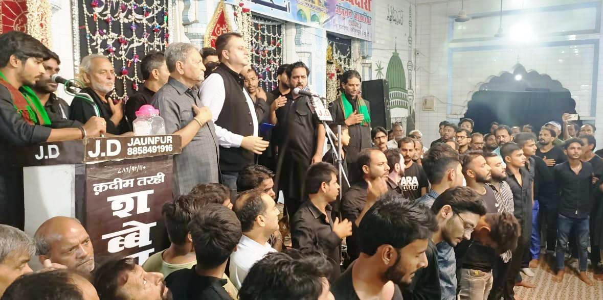 जौनपुर धारा, जौनपुर। शीराज-ए-हिंद की गंगा-जमुनी तहजीब को अपने दामन में समेटे और हिन्दू-मुस्लिम एकता की प्रतिक अंजुमन जाफरिया के तत्वावधान में स्थानीय कल्लू मरहूम के इमामबाड़े में कर्बला के प्यासे शहीदों की याद में कदीम तरही शब्बेदारी रविवार को सम्पन्न हुई। शब्बेदारी में दूर-दराज से आये हुए सोगवारों ने लगातार मातम कर आंसुओं का नजराना इमाम हुसैन को पेश की। इस दौरान कर्बला की याद में लोगों की आंखें नम हो गई। शब्बेदारी में मशहूर अंजुमनों के साथ नगर की विख्यात अंजुमनों ने नौहों व मातम का नज़राना पेश किया। शब्बेदारी में मुख्य अतिथि सोशल रिफॉर्मर अम्बर फाउंडेशन के चेयरमैन वफ़ा अब्बास नगरामी ने लोगो को संबोधित करते हुए कहा की इस्लाम धर्म में एखलाक इंसानियत इल्म को अधिक महत्व दिया गया है ऐसे में समाज के सभी लोगो को शिक्षित होकर देश को आगे बढ़ाने में महत्वपूर्ण योगदान देना है। इसी कड़ी में अंबर फाउंडेशन तीन सौ छात्राओं को शिक्षित करने के उद्देश्य से आईएएस और पीसीएस बनाने के लिए प्रâी कोचिंग की व्यवस्था करा रही जिसका नाम कलेक्टर बिटिया दिया गया है। इसमे हर धर्म के बच्चियों को शामिल होकर देश की तरक्की और मुख्य धारा से जुड़ने की अपील की। वही इस इलाके के गरीबो की आँखों का चश्मा मोतियाबिन्द ऑपेरेशन करवाने की भी बात कही। शब्बेदारी की मजलिस को खिताब करते हुए मौलाना नसीर आजमी ने कहा कि इस्लाम धर्म के प्रवर्तक हजरत मोहम्मद साहब के नवासे इमाम हुसैन ने जो कर्बला में शहादत दी है। मजलिस के बाद शबीहे ताबूत बरामद हुआ जिसके हमराह अंजुमन जवादिया बनारस, ज़िनतुल अज़ा सुलतानपुर, आबिदिया फैज़ाबाद, नासेरूल अज़ा कोराली इलाहाबाद, सज्जादियां सुल्तानपुर के साथ नगर की कई अंजुमनों ने नौहा व मातम किया। अन्त में अन्जुमन जाफ़रिया के अध्यक्ष नजमुल हसन नजमी ने सभी के प्रति आभार प्रकट किया। संचालन जाहिद कानपुरी एवं बिलाल हसनैन ने संयुक्त रूप से किया। इस अवसर पर नजमुल हसन नजमी, मास्टर वसीम, ताबिश ज़ैदी, मीनू खान, बिका, मोनू, शहनवाज खान, आरीज़ जैदी, शकील खान, महताब अली, नदीम मिर्ज़ा, राज मिर्ज़ा सहित भारी संख्या में इमाम हुसैन अलैहिस्सलाम के अकीदतमंद मौजूद रहे।