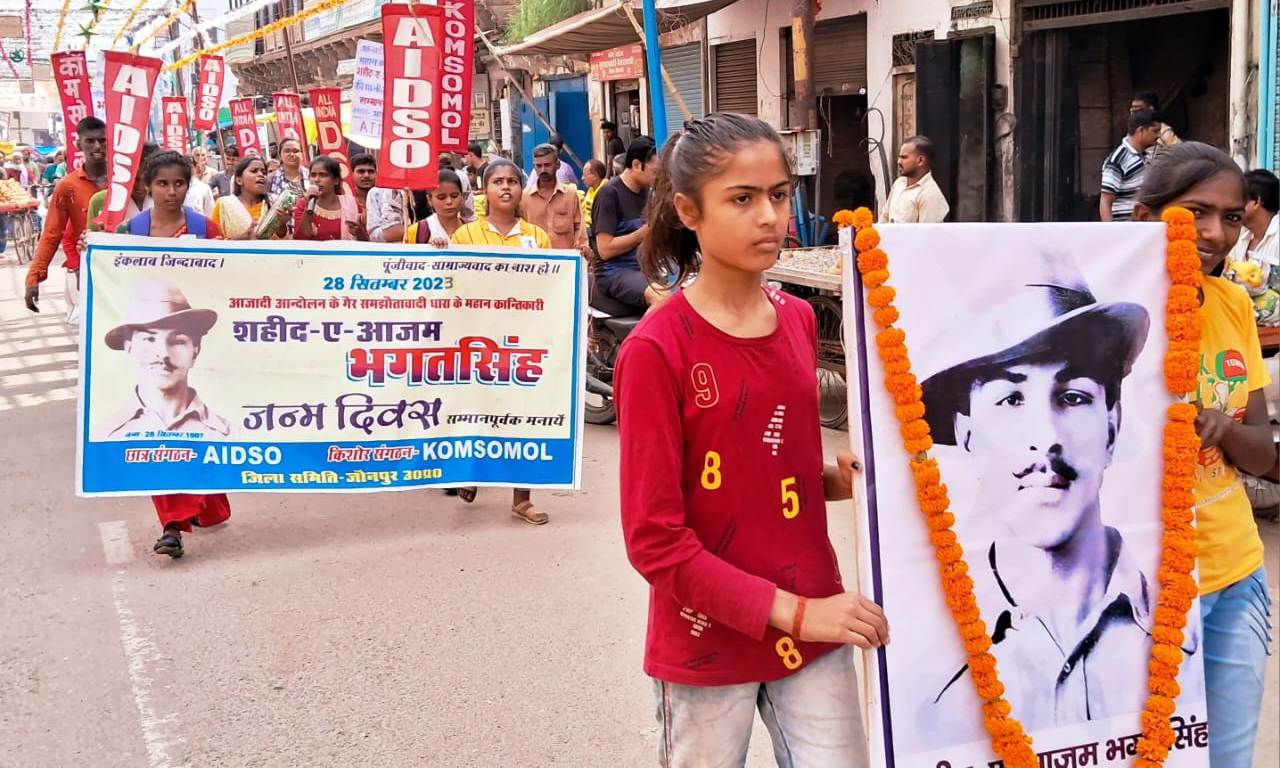 जौनपुर धारा, जौनपुर। भारतीय आजादी आंदोलन की गैर-समझौतावादी धारा के महान क्रांतिकारी शहीद-ए-आजम भगतसिंह की 116वें जन्म दिवस पर छात्र संगठन ऑल इण्डिया डेमोक्रेटिक स्टूडेंट्स ऑर्गेनाइजेशन द्वारा जौनपुर शहर में सब्जी मण्डी स्थित भगतसिंह पार्क में भगतसिंह की प्रतिमा पर माल्यार्पण, बैज धारण, फोटो व कथन प्रदर्शनी तथा श्रद्धांजलि कार्यक्रम’ आयोजित किया गया। कार्यक्रम की शुरुआत शहीद-ए-आजम भगतसिंह की प्रतिमा पर माल्यार्पण करके किया गया। अमर शहीद के चित्र युक्त बैज लोगों को धारण कराया गया। कार्यक्रम में अधिकतर छात्र छात्राओं के अलावा अन्य कई गणमान्य लोगों ने शहीद-ए-आजम के चित्र पर पुष्प चढ़ाकर श्रद्धांजलि अर्पित किए। इसके बाद ‘भगत सिंह तू जिंदा है, हर एक लहू के कतरे में’ ‘भगतसिंह लौट के आ, पुकारे देश तेरा’ ‘हम भगत सिंह के साथी हैं, कोई और नहीं’ जैसे क्रांतिकारी गीतों की प्रस्तुति की गई। कार्यक्रम को संबोधित करते हुए एआईडीएसओ के राज्य सचिव दिलीप कुमार ने कहा कि भगत सिंह ने न केवल इस देश को अंग्रेजी राज की गुलामी की बेड़ियों से आजाद कराना चाहा था, बल्कि उन्होंने एक ऐसी समाज व्यवस्था की कल्पना की थी जिसमें इंसान को अपनी बुनियादी आवश्यकताओं के लिए तरसना नहीं पड़े। भगत सिंह और उनके क्रांतिकारी साथियों ने भारत को एक समाजवादी वतन बनाना चाहा था। जिसमें मानव के द्वारा मानव के शोषण का खात्मा हो सके, गैरबराबरी मिट सके और देश में अमन चैन खुशहाली आ सके। लेकिन आजादी के 75वर्षों बाद भी हम एक ऐसी समाज व्यवस्था से कोसों दूर हैं। इसलिए आज भी भगत सिंह और उनके साथियों का जीवन संघर्ष व उनके आदर्श छात्र युवाओं के लिए प्रेरणा स्रोत हैं। मौके पर मौजूद एआईडीएसओ के भूतपूर्व राज्य उपाध्यक्ष मिथिलेश मौर्य ने कहा 28 सितम्बर का दिन संकल्प लेने का दिन है। इसलिए भगत सिंह के क्रांतिकारी विचारों से प्रेरणा लेते हुए उनके बताए रास्ते पर चलकर उनके सपनों के भारत का निर्माण करने के लिए आगे बढ़ना होगा तभी उनके प्रति सच्ची श्रद्धांजलि होगी। भगतसिंह व उनके क्रांतिकारी साथियों के गैर समझौतावादी क्रांतिकारी विचारों को स्कूल के पाठ्यक्रमों में शामिल करने, निःशुल्क, जनवादी, धर्मनिरपेक्ष व वैज्ञानिक शिक्षा पद्धति लागू करने तथा शिक्षा के निजीकरण, व्यापारीकरण, व्यवसायीकरण, सांप्रदायीकरण व केंद्रीयकरण को बढ़ावा देने वाली नई राष्ट्रीय शिक्षा नीति-2020 को रोकने के लिए संगठित छात्र आंदोलन खड़ा करना होगा। कार्यक्रम की अध्यक्षता एआईडीएसओ के जिला संयोजक संतोष प्रजापति व संचालन अनीता ने किया। उक्त अवसर अंजली, प्रवीण, देवव्रत, चंद्रकांत, पूनम, खुशबू, कमल, आदर्श,  विवेक, अभिषेक, युवराज, दीपचंद, कृष्णा, प्रह्लाद, अंशिका, शिवान