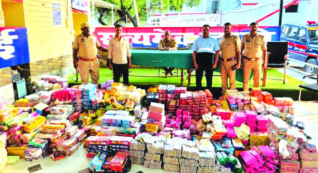 जौनपुर। त्योहारों के मद्देनज़र चलाए जा रहे पटाखा अभियान के तहत शाहगंज पुलिस ने बड़ी सफलता हासिल की है। थाना शाहगंज पुलिस टीम ने रविवार को दो आरोपियों को गिरफ्तार कर उनके कब्जे से भारी मात्रा में अवैध पटाखे और क्रय-विक्रय की नकदी बरामद की। बरामद माल की अनुमानित कीमत लगभग साढ़े नौ लाख रुपये बताई जा रही है। यह कार्रवाई पुलिस अधीक्षक डॉ.कौस्तुभ के निर्देशन, अपर पुलिस अधीक्षक नगर आयुष श्रीवास्तव के मार्गदर्शन एवं क्षेत्राधिकारी शाहगंज श्री अजीत सिंह चौहान के पर्यवेक्षण में की गई। मुखबिर की सूचना पर पुलिस टीम ने एराकियाना, कस्बा शाहगंज से दोनों आरोपियों को गिरफ्तार किया। तलाशी के दौरान उनके कब्जे से कुल 7 कुंतल 11 किलो 600 ग्राम अवैध पटाखे तथा 56,140 नगद बरामद किए गए। पुलिस ने दोनों के खिलाफ मुकदमा दर्ज कर आगे की कानूनी कार्रवाई शुरू कर दी है। गिरफ्तार अभियुक्तों में मो.इरफान पुत्र मो.रिजवान, फैजान अहमद पुत्र मो.रिजवान निवासी एराकियाना थाना शाहगंज शामिल है।